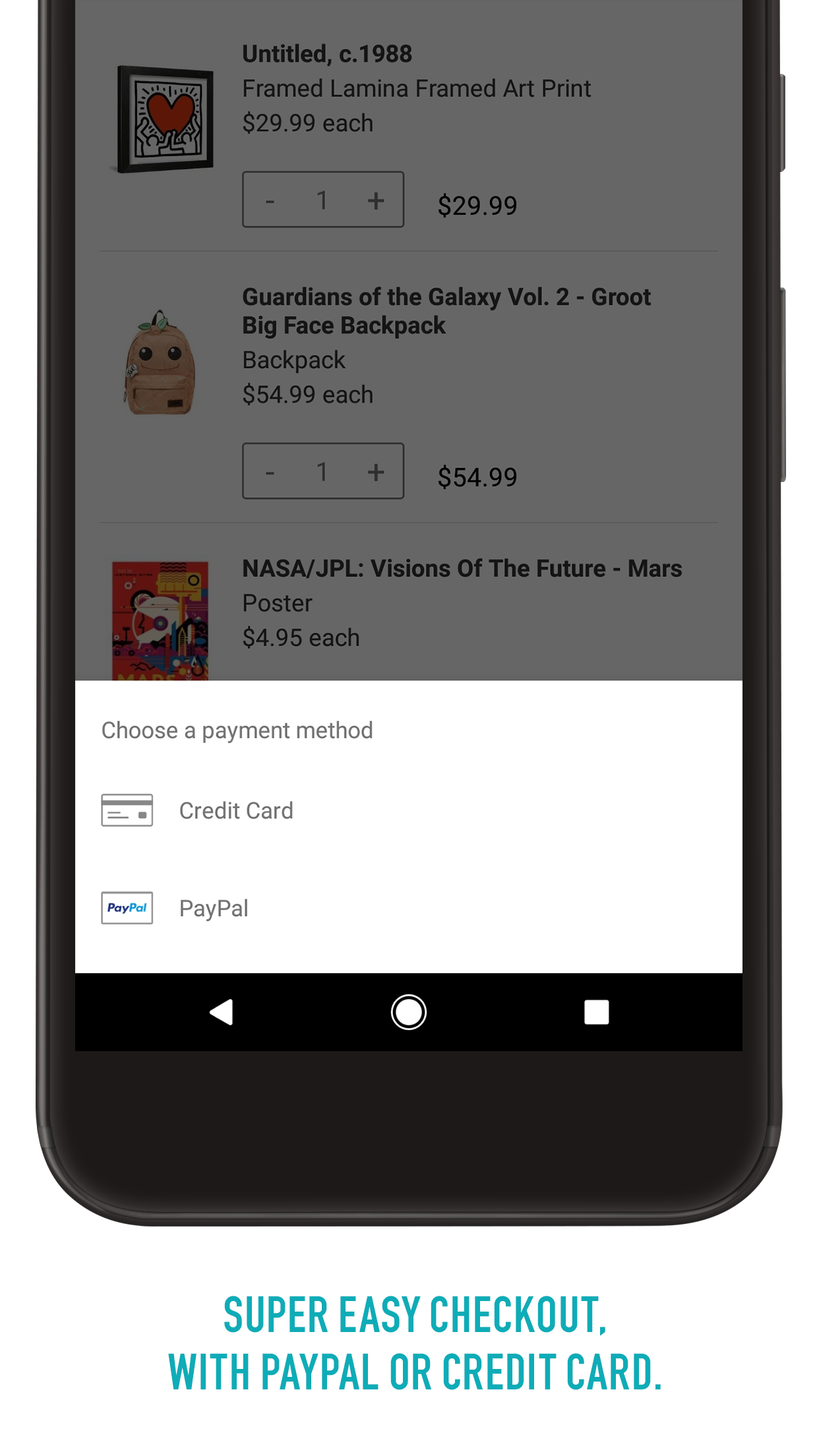 The AllPosters app puts the power of self-expression in the palm of your hand. Browse over a million products (!!!), including posters, art, t-shirts, hoodies, framed posters, wall art, and TONS more. Need a Star Wars t-shirt for your cousin? A Marvel or DC poster for your brother? Or maybe a framed art print for yourself? Browse hand-curated collections and exclusive items, or simply search to find just the very thing you’re looking for. Rich images make it super easy to see exactly what you’re buying. And if you want to make shopping even easier, just choose PayPal at checkout. Just a few taps and swipes and that awesome gift is on its way. From decals and t-shirts to art and prints, All Posters has got you covered.