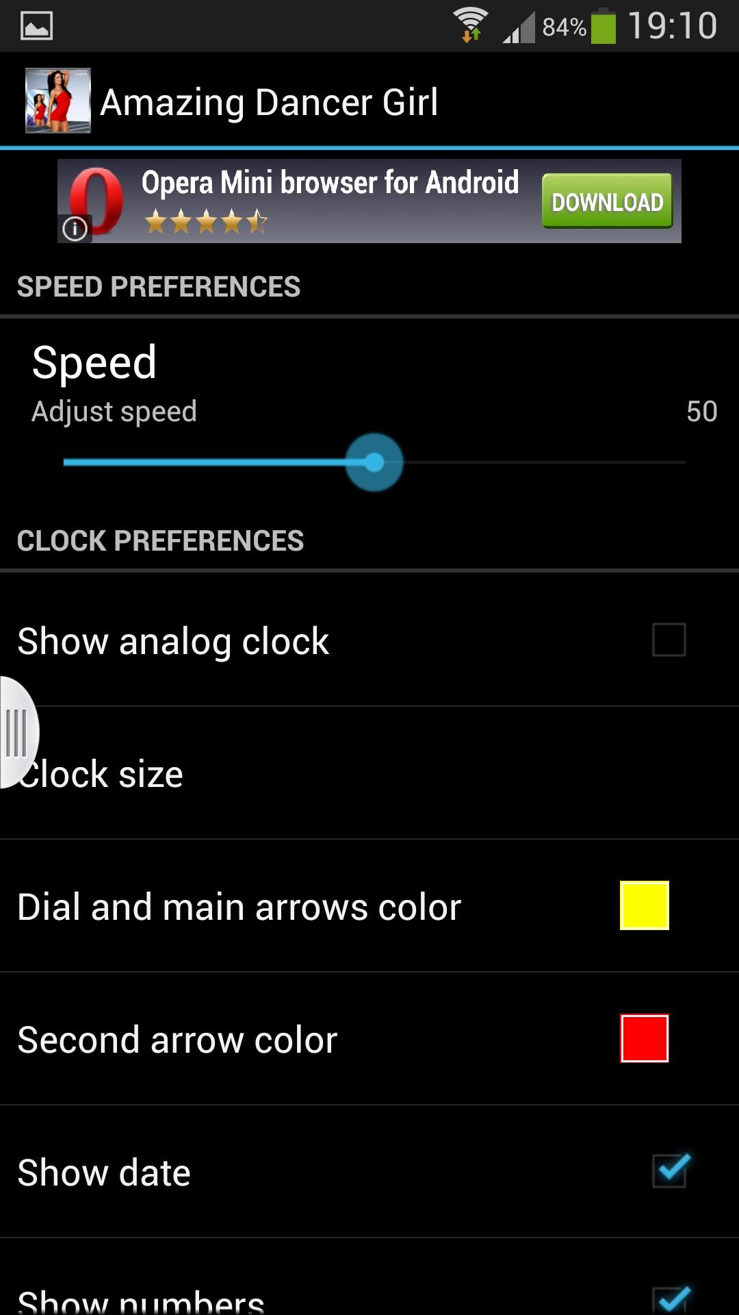 Amazing Dancer Girl Live Wallpaper Extremely beautiful girl will dance on your phone screen around the clock. Features: - Free. - Adjustable speed. - Does not drain your battery life time. - Option to enable / disable a stylish analog clock from live wallpaper settings( by default disabled). - Option to choose the clock color, to show / hide date, to show / hide the clock numbers, clock size etc. - Automatically resize to your resolution for the best view. - Can be moved to SD Card(App2SD support).