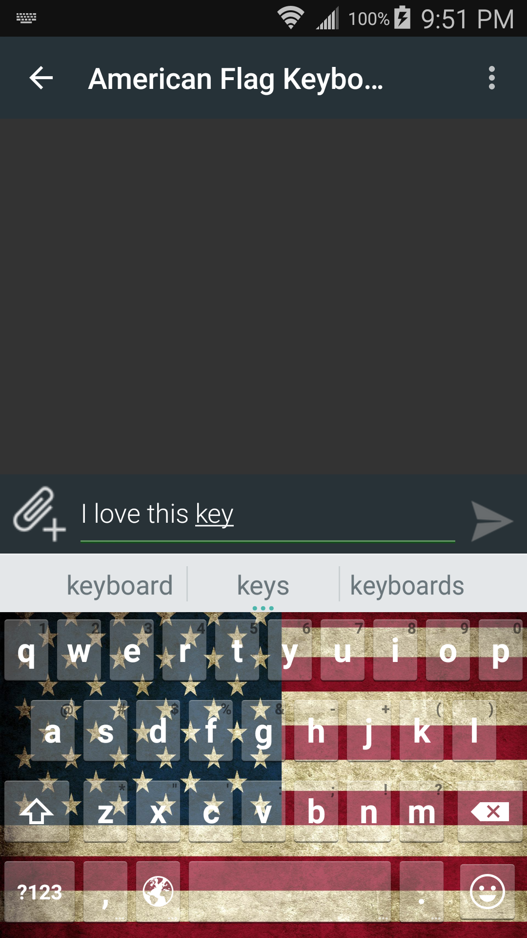 American Flag Keyboard (Package Name: com.toad.american.flag.keyboard) is developed by Toad and the latest version of American Flag Keyboard 1.14 was updated on December 6, 2016. American Flag Keyboard is in the category of Personalization. You can check all apps from the developer of American Flag Keyboard. Currently this app is for free. This app can be downloaded on Android 4.4+ on APKFab or Google Play. All APK/XAPK files on APKFab.com are original and 100% safe with fast download.