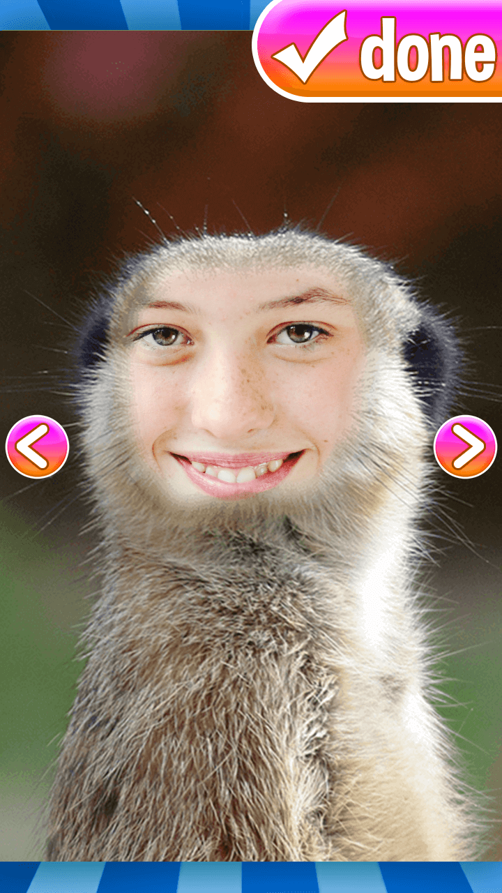 ❃ Would you like to be a cute puppy, crazy frog, fluffy cat or wild wolf? Why not? Everything is possible! Now you can morph your face into an animal because one of the best “face swap” apps for Android™ is finally here! This is a great “photo editing app” where you can choose animal “face in hole” from our big collection and turn your pics into a cat, dog, fox, wolf, monkey, tiger or any other animal “photo montage”. Just download our ❃Animal Face Photo Montage ❃ and let your imagination run wild! Turn your pictures into morphed animal photos by combining heads with blended animal heads and create awesome pictures. Make your funny images more interesting with our animal “face editor”, apply amazing photo editing effects, add a couple of lovely stamps and stickers for photos and experience the easy photo manipulation. All you have to do is to simply add an image from your device or take a new one with your phone’s camera and adjust it to the desired animal photo frame. Resize the photograph to make the best fit and you’re done! Discover a whole new world of photo editing with a super fun “animal face” maker. This animal face replace app provides you with different animal heads that will make you laugh out loud! So, go and get it! Transform yourself right now and make the best photo pranks! ✔ One of the best photo editing apps; ✔ Check out an amazing collection of funny animal templates like lion, monkey, fox, tiger, pig, cat, dog head and many more; ✔ Take a photo with your camera or select an image from your phone gallery; ✔ Apply animal faces to photo by rotating, resizing and moving them; ✔ Add cool photo effects and funny stickers of animal heads to your pics; ✔ Personalize your pics and put text on pictures; ✔ Morph your face into an animal with our ❃Animal Face Photo Montage ❃ and save your photos in gallery; ✔ Share your photo prank with your friends on all social media. ❃ What’s your spirit animal? Find out today! Become a monkey, cat or pig! Check out our brand new funny “face off” and you’ll find a wide variety of cute animal templates that you can use to make great photo montage. You can become a dangerous wolf sneaking in the forest, big gorilla in the jungle, or any other animal you want. Be a part of an endless fun with this ❃Animal Face Photo Montage ❃. Modify a picture of your friend - add a dog face to his head and share it on social networks to have fun for days. Use a tiger “face blender” and unleash a wild beast inside you. Download our app and enjoy the photo manipulation for free with this cool head changer! Don't hesitate, get it right now and enjoy photo prank! ❃ Get a new animal mask for your face and get in touch with your wild side thanks to this ❃ Animal Face Photo Montage ❃ amazing app for face morphing! This amazing photo montage is suitable for boys and girls and people of all ages. It is guaranteed that it will make you feel better and brighten up your day. So, give yourself a fantastic virtual makeover using our amazing animal face maker and discover what animal is hidden in your personality. If you want to cheer up your friends, this should do the trick! ❃ Ready to have fun with one of the best fun swap apps? Embrace your inner animal spirit and make yourself unrecognizable with ❃ Animal Face Photo Montage ❃. Apply face morph effect, select your favorite photo filter and your photo montage is done! With this powerful photomix app, you can create some of most stunning animal faces to entertain your family and friends. Do not wait any longer and download this trending app for photo manipulation and you’ll never be bored! *Android™ is a trademark of Google Inc.
