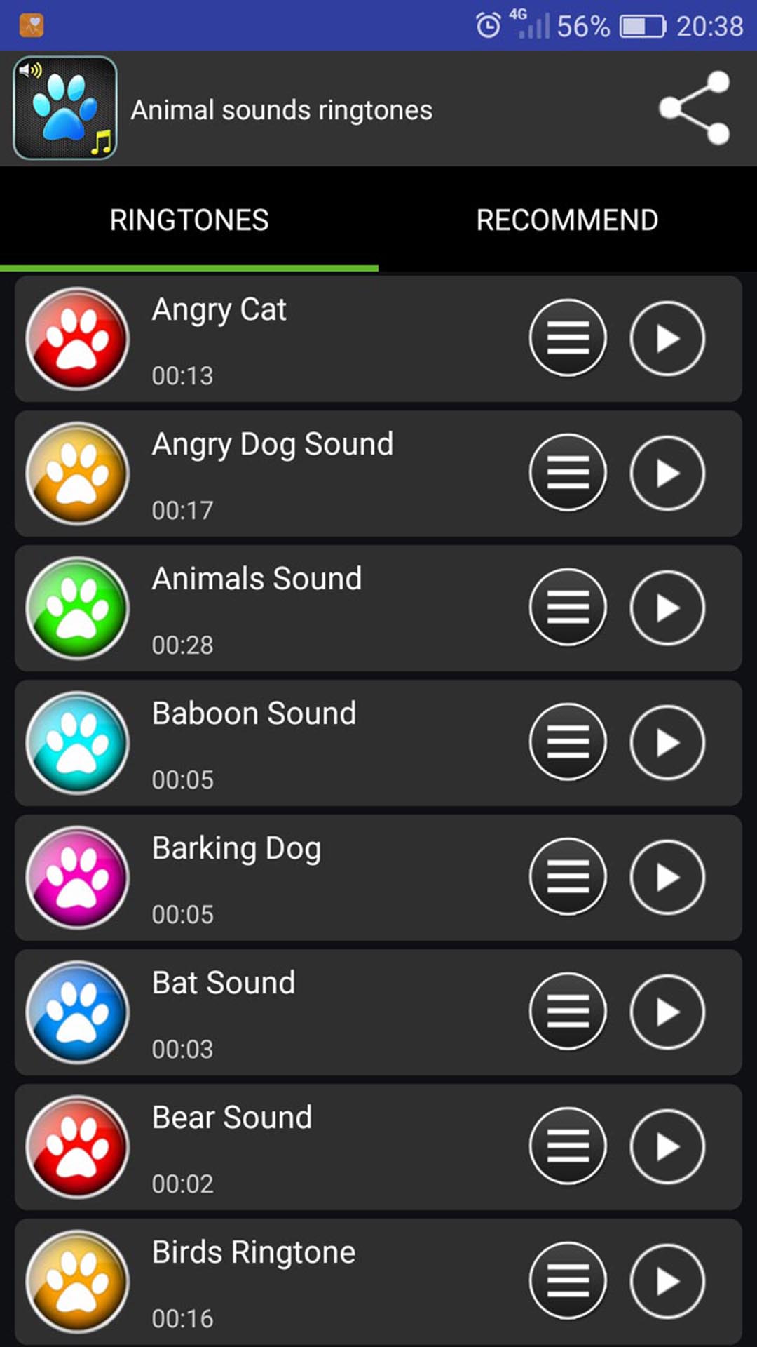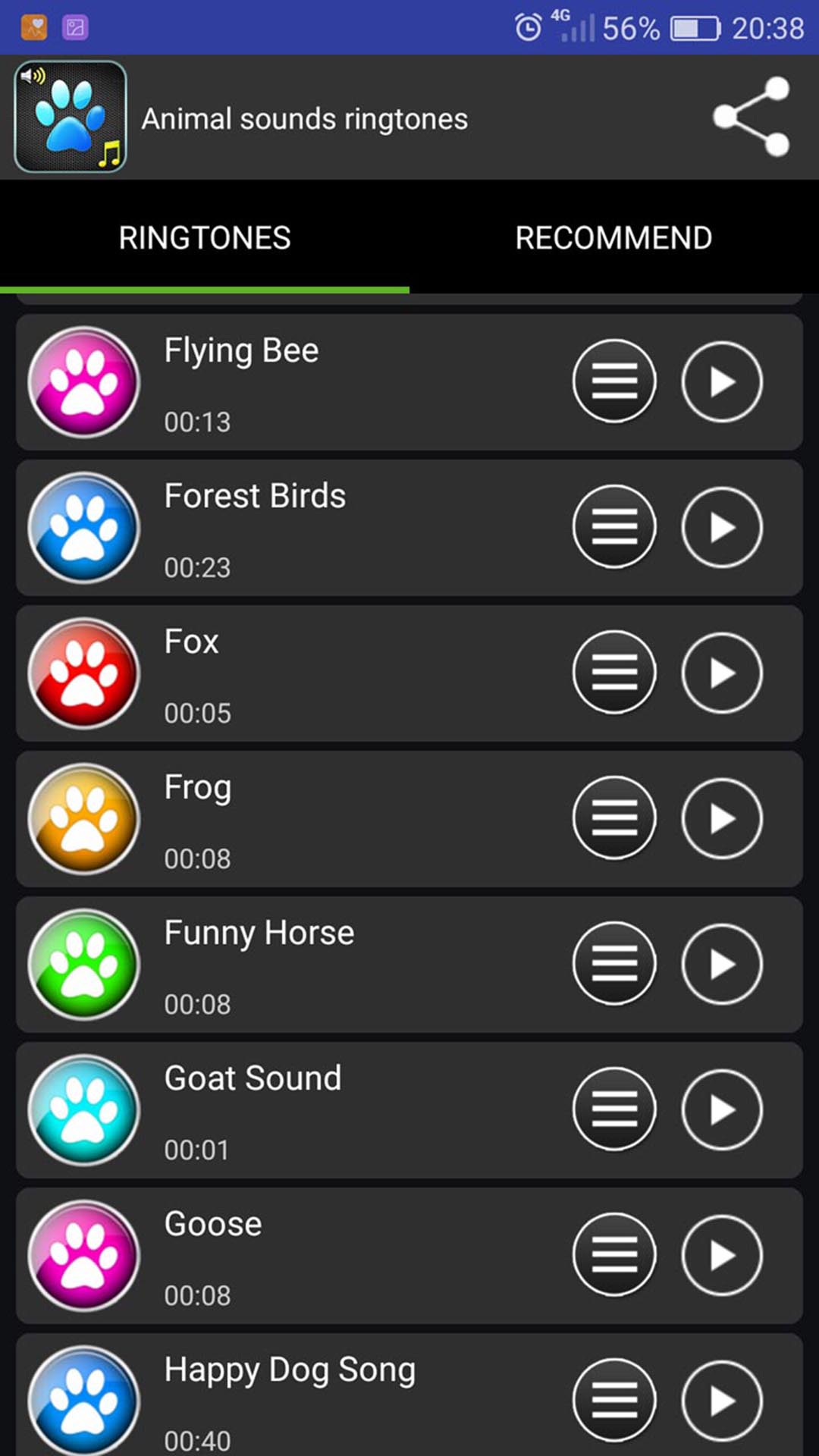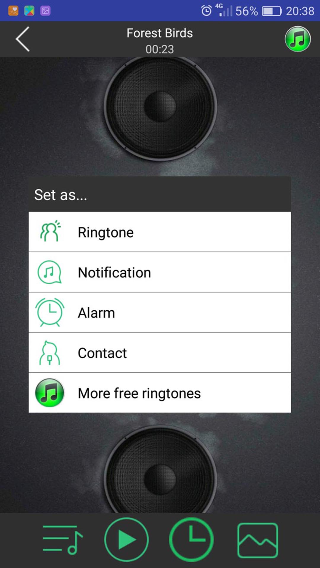 If you like one of the animal ringtones you can set it as your default ringtones, alarm tone or notification tone.