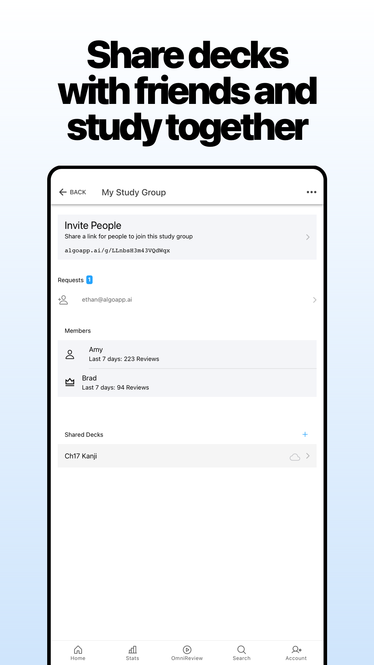 Ranked #1 Education app in multiple countries world-wide. Featured in the New York Times. Learning Chinese characters? Kanji? Medicine? Another subject with lots to memorize? With that much to learn, you need the right flashcard app, to get the most from your study time. That's why AlgoApp uses an improved form of Spaced Repetition (SRS), built with Artificial Intelligence (AI), to maximize the amount of learning you get done in each study session. When you go to study, the AI chooses which flashcards you need to work on, based on a detailed analysis of your progress. It's like a coach, for your brain. Make your own flashcards, styled how you like. AlgoApp lets you use colors, bulleted lists, and more. Or search through millions of flashcards that are ready for you to download. Your choice. You get all this power, wrapped in a simple, polished app. SIMPLE • Easy to add cards directly from the mobile app • Format your cards using colored text, bulleted lists, underlines, and more, all without knowing CSS • Flip your decks to study back-to-front, with a couple taps • Syncs automatically with desktop, web app, and your other phones and tablets • Create decks on the go • Make cards using photos from your camera • Share any deck with a friend by putting in their email POWERFUL • Fully-featured—-NOT a "companion" app that requires a computer • Detailed stats on each of your decks, and individual cards too • For advanced formatting, supports HTML and CSS • Text-to-speech (TTS) that reads parts of your cards in English or other languages • Automatic translation • Automatic furigana generation annotation for Japanese kanji • Study offline, and your new cards and progress sync when you're back online USER-FRIENDLY • Dashboard that shows your overall progress • Study at any time; doesn't force you to study cards on a rigid schedule • Study your recent decks from the Dashboard in just 2 taps • "Night Mode" that's easy on your eyeballs when studying in the dark • Settings sync across all your devices