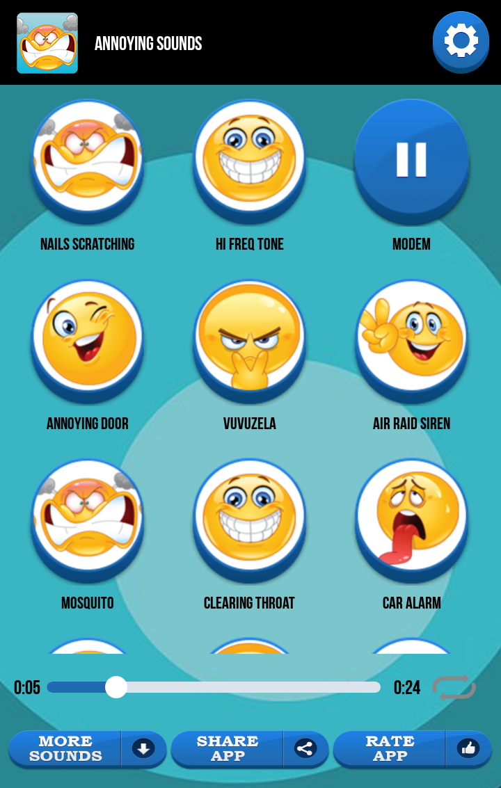 Annoying Sounds (Package Name: com.sw.annoyingsounds) is developed by SoundWave Apps and the latest version of Annoying Sounds 3.0 was updated on May 22, 2018. Annoying Sounds is in the category of Music & Audio. You can check all apps from the developer of Annoying Sounds. Currently this app is for free. This app can be downloaded on Android 4.0+ on APKFab or Google Play. All APK/XAPK files on APKFab.com are original and 100% safe with fast download.