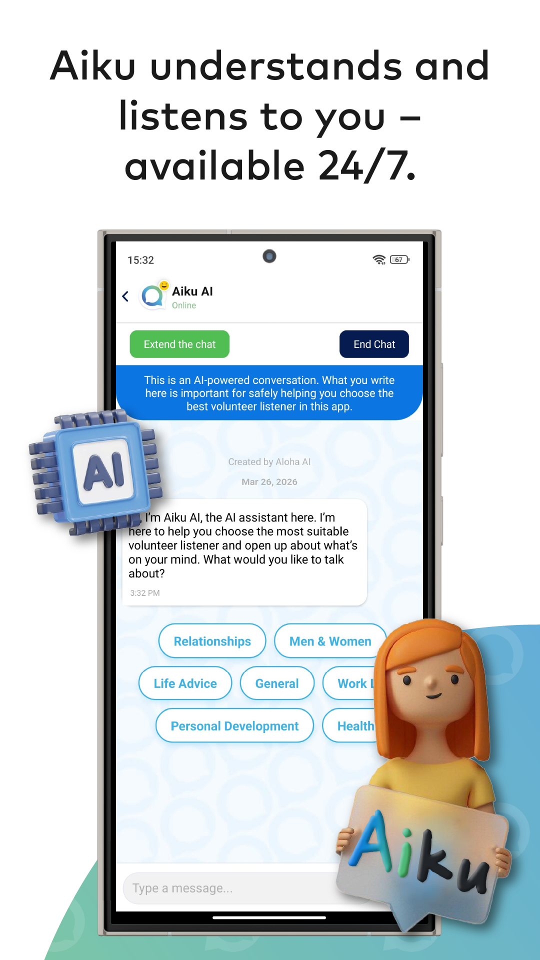 Aloha Live – Anonymous Voice & Text Chat App Talk, share, or simply be heard – completely anonymous and safe. Aloha Live is a new-generation social chat platform where you can have voice or text conversations with real people, completely anonymously, and express yourself freely. You don’t need to share your name, photo, or personal details here – just bring your feelings and thoughts. 💬 Key Features: • 15 minutes of free live voice chat every day • Safe communication with trained and verified listeners • Confession Wall – write or read anonymous posts • Earn coins, spin the wheel, and extend your chat time • Real-time translation to talk with people from different countries • 100% anonymous, private, and secure environment 🎯 Why Aloha Live? • Freedom to speak without judgment • People who truly listen • Emotional support and relief • Opportunities to build social connections • Guaranteed anonymity and privacy 🚀 How It Works: 1. Download the app 2. Join as a listener or a speaker 3. Create your anonymous username 4. Start chatting Aloha Live is not a therapy or dating app. Our mission is to provide a safe space where people can share their feelings, find support, and connect with others. Download Aloha Live now and start expressing yourself freely.