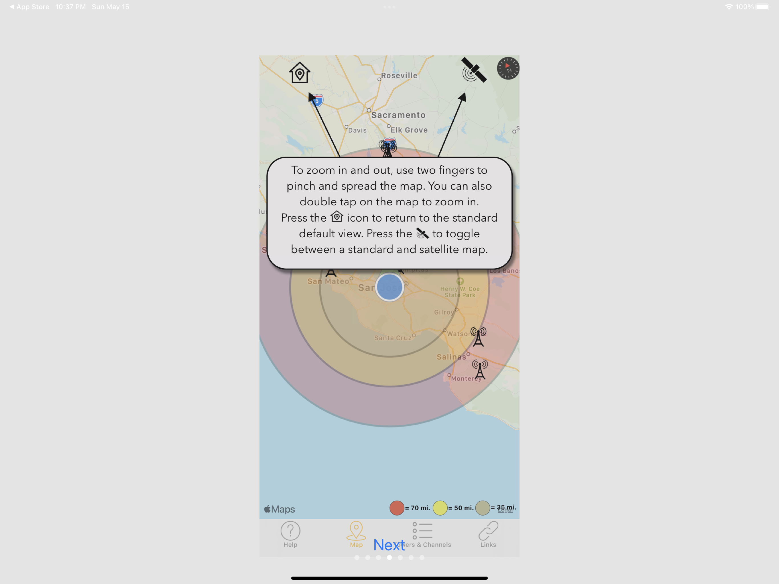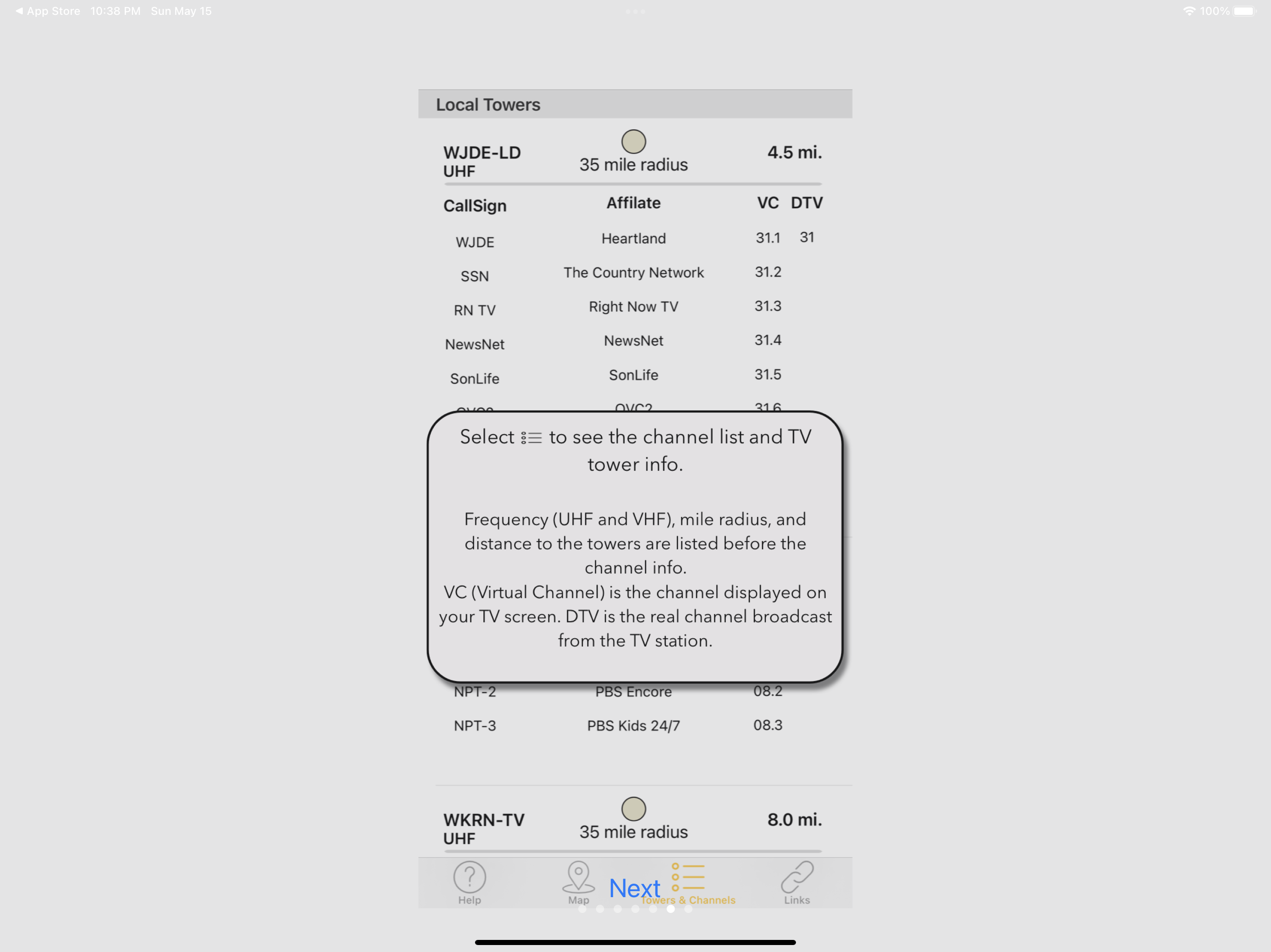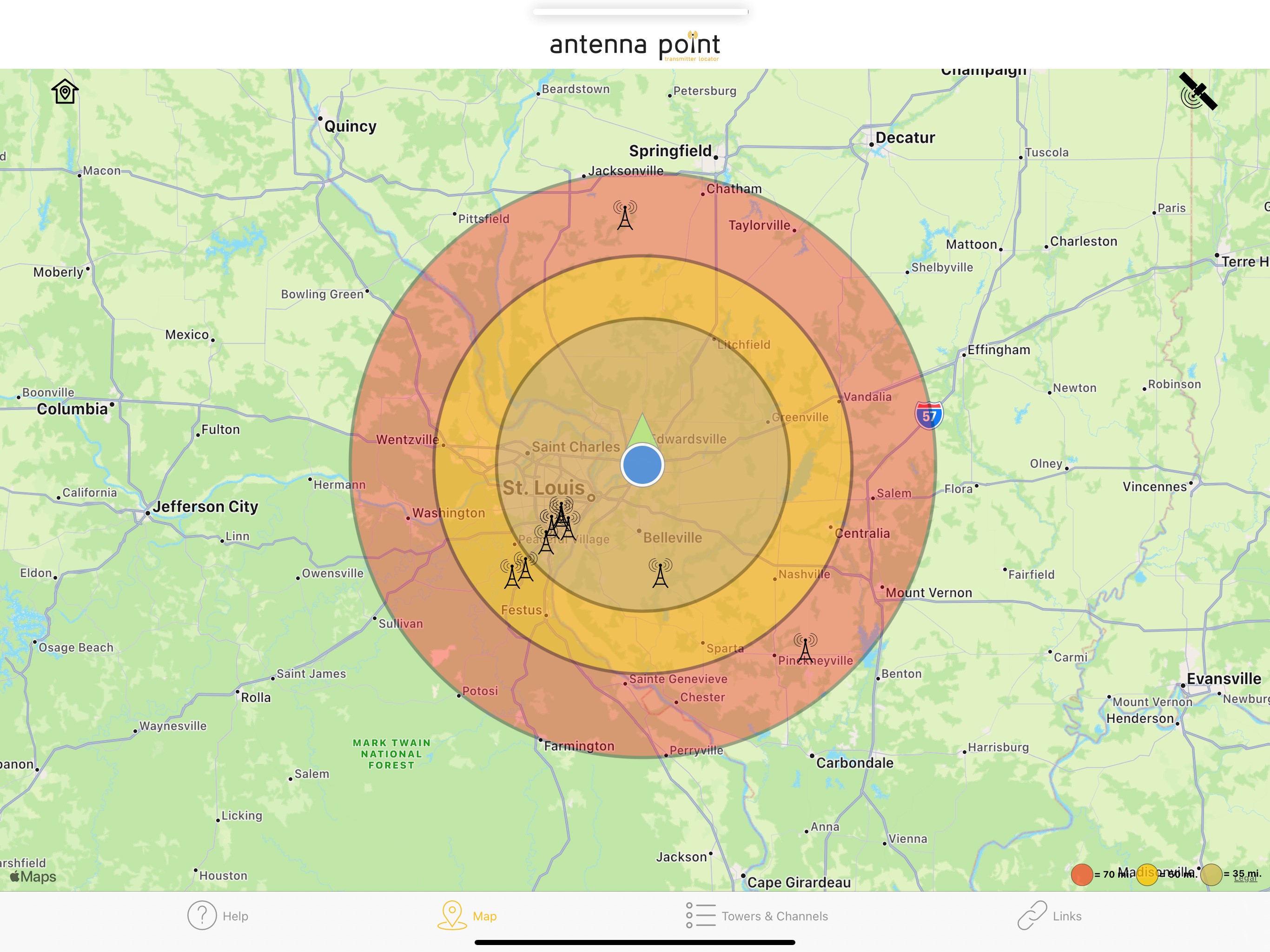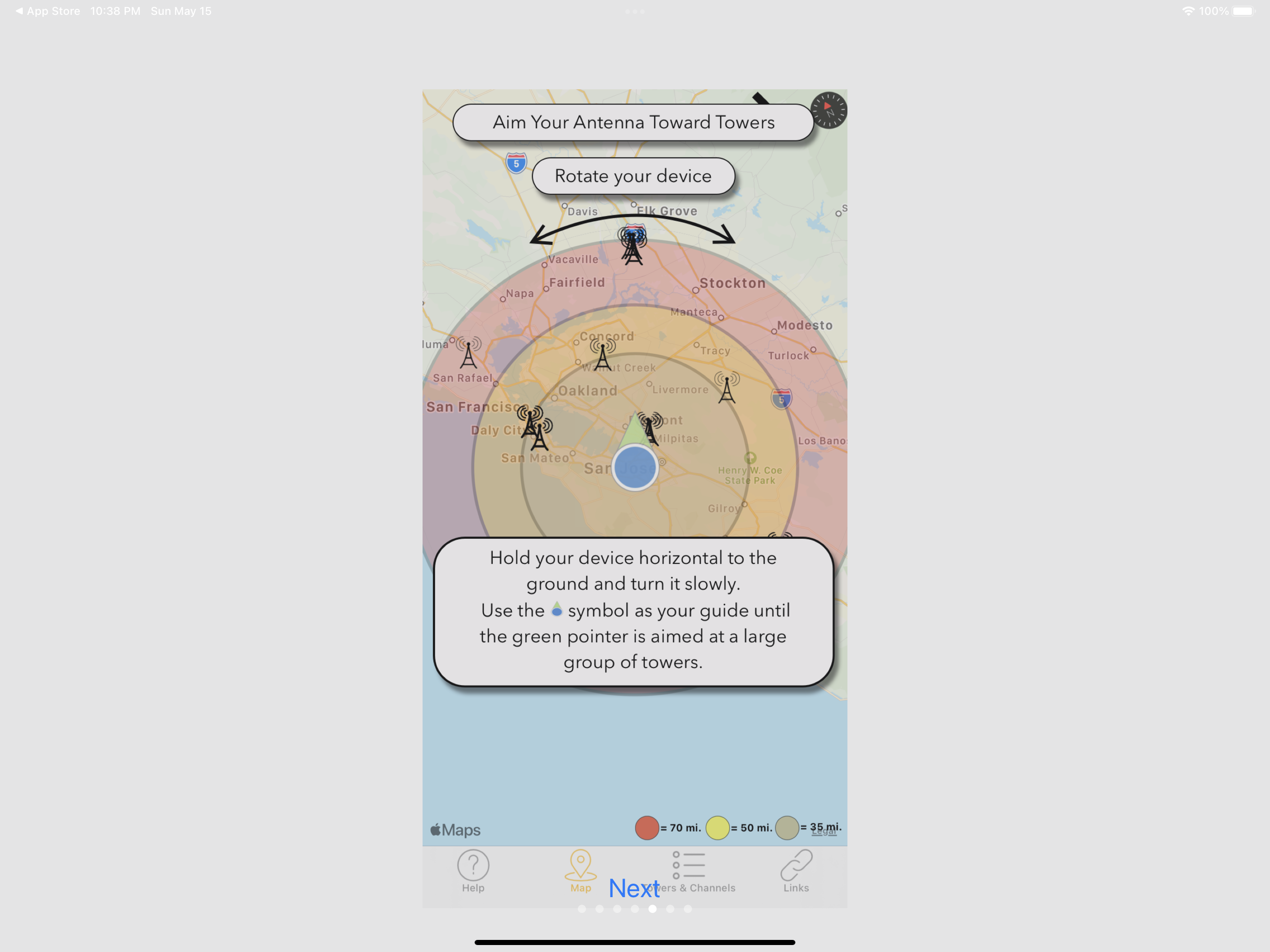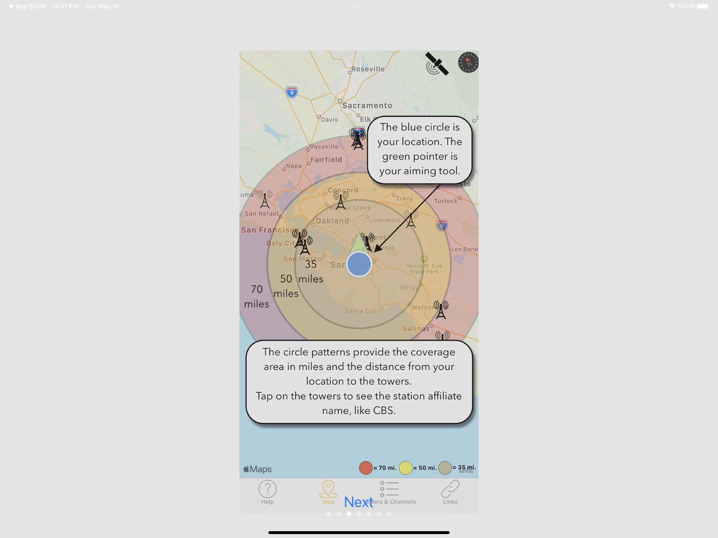 With Antenna Point, aiming your TV antenna is easy! The map in the app will display transmitting towers along with the distance from your home to each tower. Antenna Point will identify your location and provide the TV antenna coverage area within 35-mile, 50-mile, and a 70-mile range pattern. The app will help you find the best direction to aim your indoor, attic or outdoor TV antenna. Download the Antenna Point app on your smart phone or tablet, read through the step-by-step instructions and start aiming your smart phone or tablet towards the largest cluster of towers. Once you’ve found the best direction to all the towers, install your antenna in an area with the best unobstructed view to the TV towers. Connect your antenna to your TV and use your remote to scan your TV for channels. The towers are displayed in black markers on the map, and you can tap on each tower to see the main network call sign, like ABC, NBC, CBS, FOX, PBS, The CW, ION, MeTV and many more. The app includes a channel list, so you can preview the TV stations available in your area. Tips: After your initial channel scan, check the number of TV stations you are receiving. If you are not receiving all the available channels move your antenna to another spot and rescan your TV for channels until you receive the most channels. You may have to move the antenna a few times until you find the best TV signals. [Note: certain variables unrelated to the antenna’s performance can interfere with signal reception, such as terrain, tall buildings, and trees – try finding the most unobstructed view to the TV towers for the best TV signals]. If you have any questions about antennas or installation, we are available 7 days a week to help. Give us a call at 877-825-5572 or chat with us online at antennasdirect.com or gomohu.com.