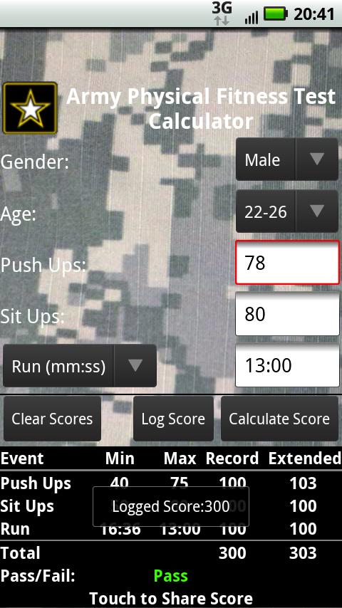 APFT Calculator w/ Score Log