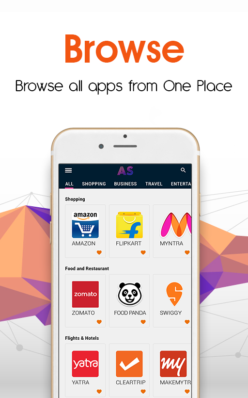 AppSurfr - Your All In One App for Shopping, Recharge, Travel, News & More --------------------------------------------------------------------------------------------------------------------------- Are you the one whose most of the phone memory is occupied by apps ? Are you the who has to download multiple apps for every single need like shopping, recharge etc? Not anymore! Introducing AppSurfr - A one of it's kind app which lets it's user browse hundred of top apps without the need of downloading. Now recharge mobile, Book flower, Order food online from our all in one App called AppSufr Why To Download AppSurfr - Instantly Use top Apps without Downloading: -------------------------------------------------------------------------------------------- AppSurfr, the all in one app saves memory and battery of your smartphone. Switch to Appsurfr and carry out different online activities instantly. No need to worry about privacy this all-in-one app is 100% safe. Download Appsurfr to experience utmost convenience at your fingertips. Check the list of apps available in different categories like News, Travel, Entertainment, Online Shopping, Productivity, Business, Lifestyle, Education, Payments, and Social Networking. You can book flights, cabs, recharge your mobile, or pay utility bills with this single app. Use Appsurfer for shopping from your favorite sites like Flipkart, Amazon, Myntra, Abof, Ajio, etc. AppSurfr helps you use all your favorite apps instantly without downloading different apps. Things you can do with AppSurfer: --------------------------------------------------- ** Order Food Online via Foodpanda, Yumist, Zomato etc ** Read News & View Trending Videos on YouTube, Buzzfeed etc ** Recharge mobile & Pay Electricity Bills using Freecharge & PayTM app instantly ** Shop using your favourite apps like Flipkart, Amazon, Jabong, Myntra etc ** Buy & Sell products at Quickr & Olx etc As of now you can use AppSufr to browse 90+ top apps and in coming weeks, we will add support for other apps too. Key Feature of AppSurfer - All on One Shopping App : ** 90+ Top apps with new additions regularly. ** Top Apps across all leading categories. ** Perform all online activities with a single app. ** Search your favorite app for instant access. ** One click redirects you to the app you want to use. ** Add apps to ‘My favorite’ list for quick access. Benefits of Using AppSurfr ** Save time - All-in-one app to do different online activities. (Order Food, Recharge, Shop, Book Cab, ** Book Tickets & More) ** Save Memory- Takes very less space in your phone. ** Save Money - Get latest offers & deals from top e-commerce sites. No need to download different apps for social networking, shopping, mobile recharge, cab booking, & food ordering. Appsurfr, the all-in-one app provides you instant access to all these in a few taps to make your life simpler. So keep your smartphone free for all your selfies and don’t worry about managing space.