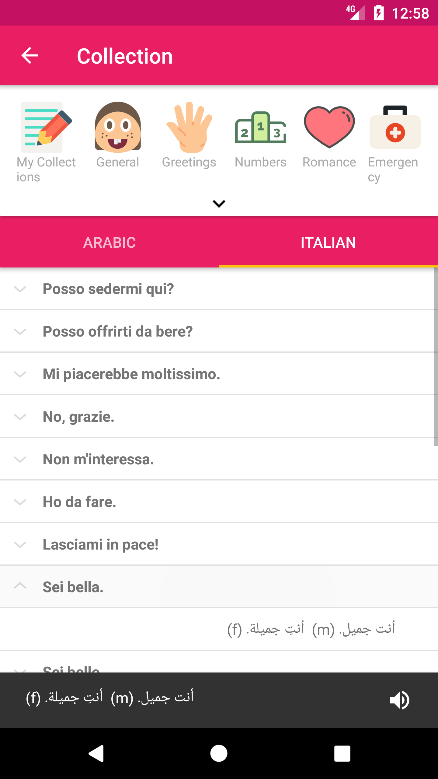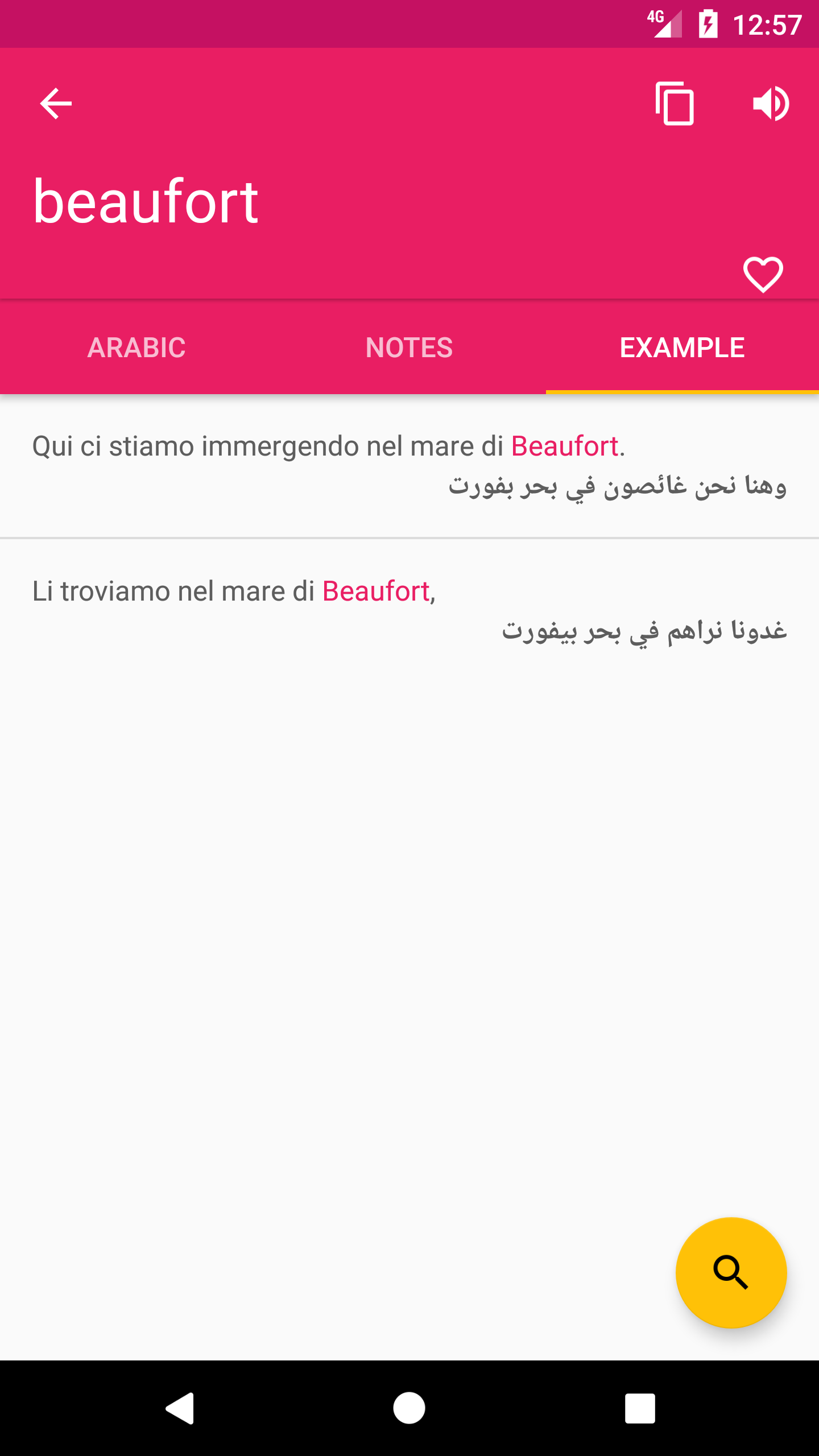 ♦ Search option is working on both Italian - Arabic and Arabic - Italian directions.