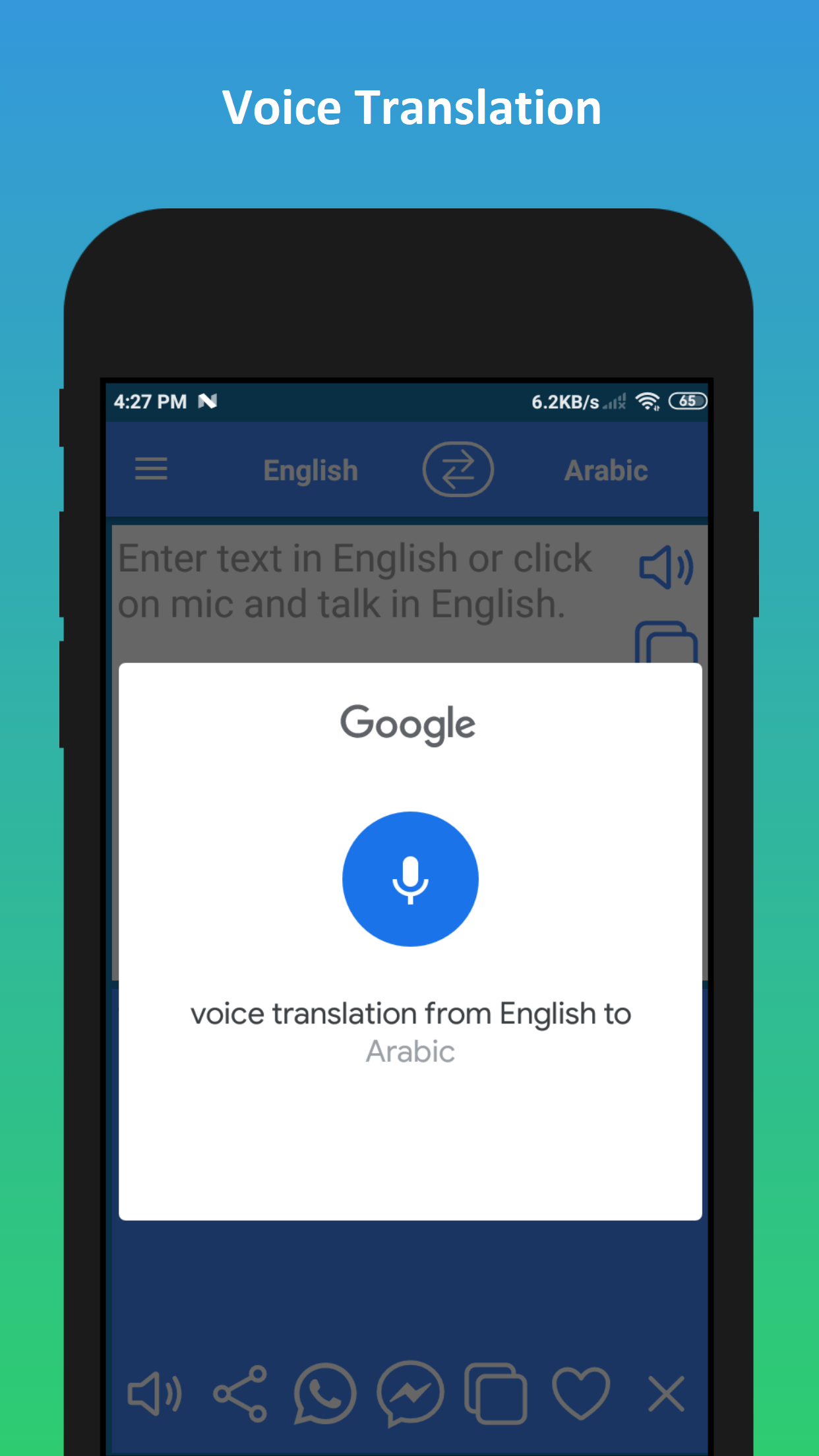 ✓ 3. Voice typing in Arabic. Voice Translation from Arabic to English.