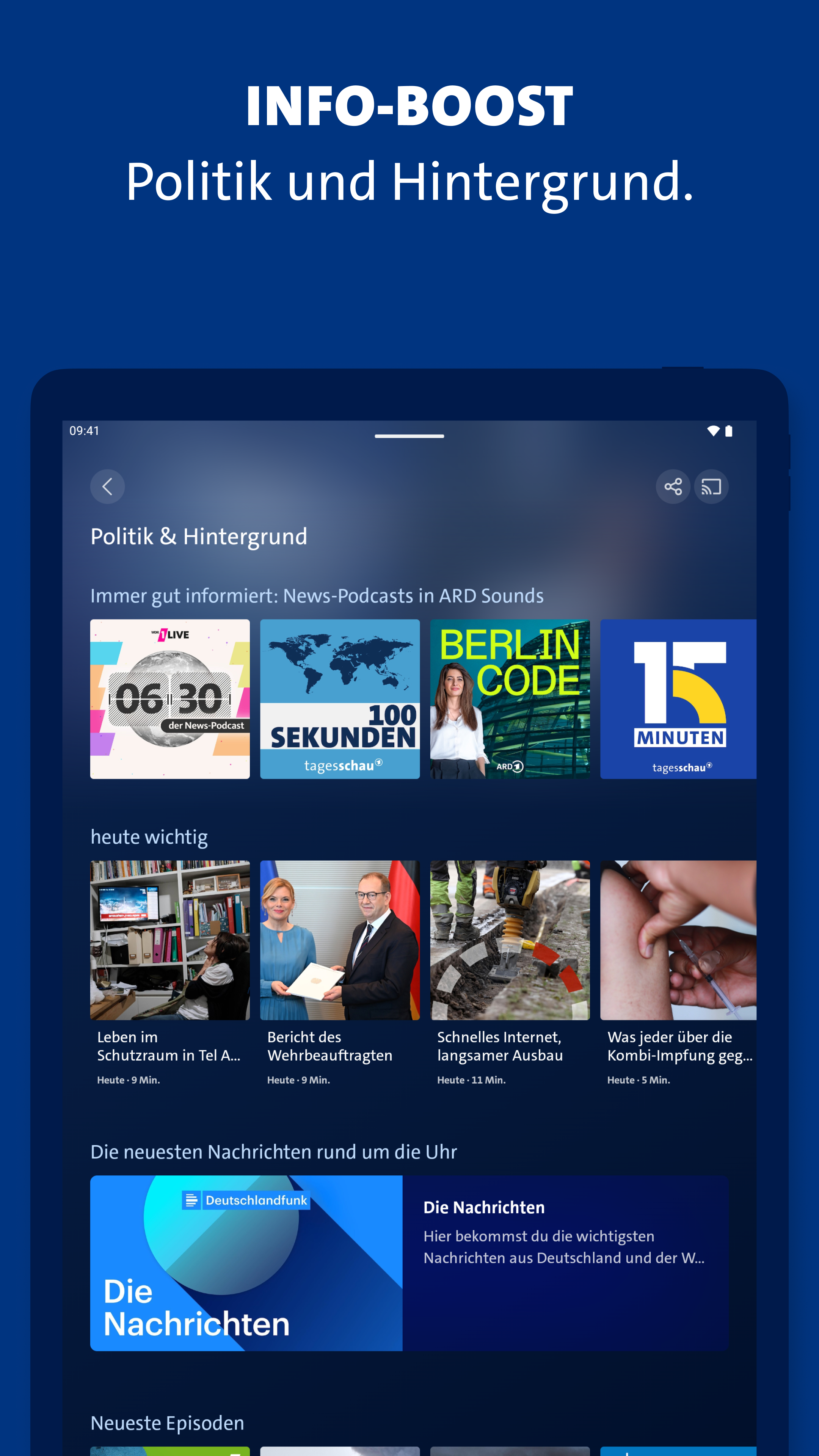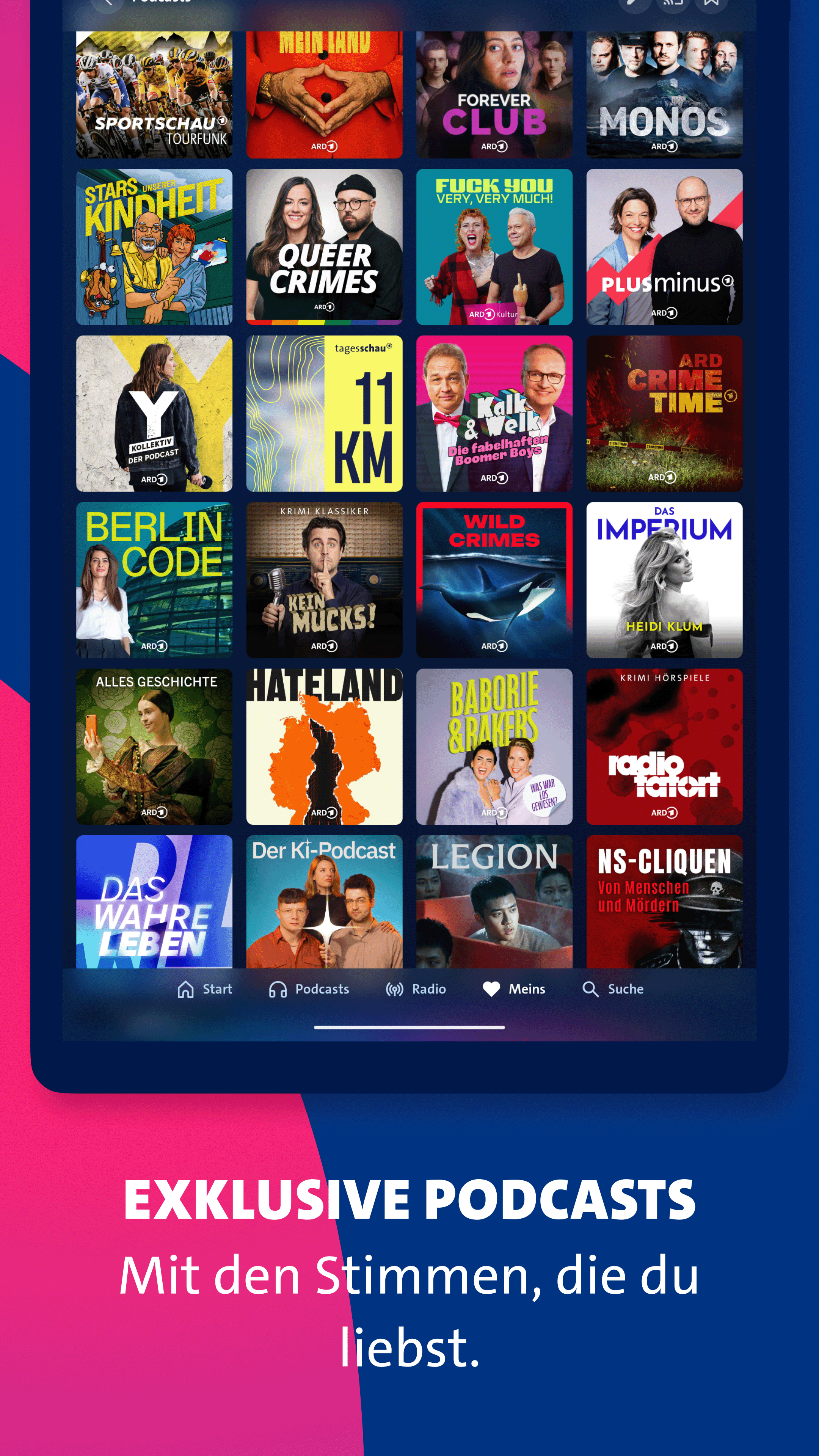 • 🎙️Podcasts in German: politics, culture, science, true crime, documentaries, comedy, sports, and more – all the important ARD podcasts in one app.