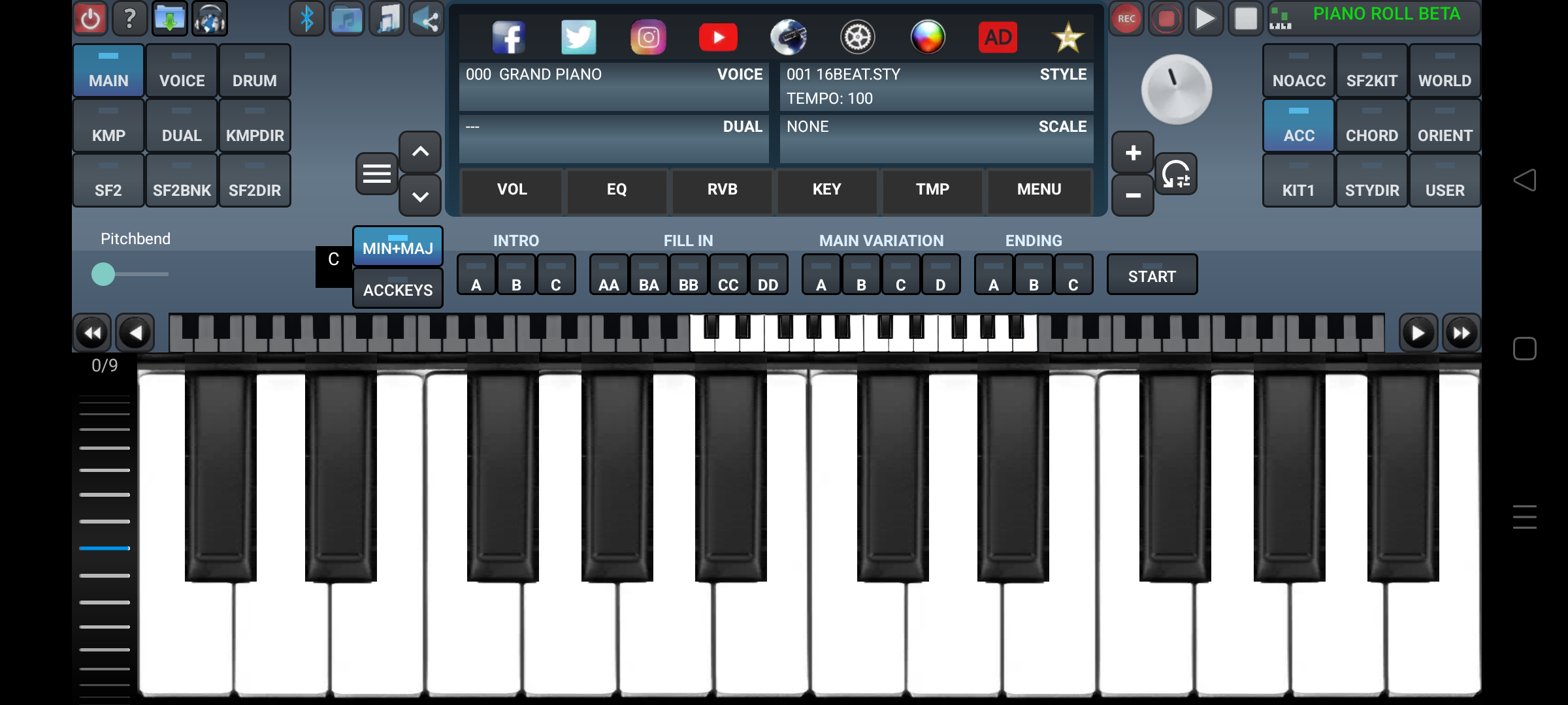 Arranger Keyboard is a professional piano app which allows you to play soundfont (Sf2) and KMP (KORG) instruments. Arranger Keyboard supports Bluetooth (BLE) MIDI keyboards and USB MIDI keyboards. You can play Yamaha Styles (STY) with accompaniment. There are 256 Yamaha styles in the app. You can download and load other Yamaha Styles. Arranger Keyboard has 127 voices including standard GM voices and additional oriental voices. You can load Sf2 and KMP files from your device and use Sf2 and KMP banks. Learn to play piano with Piano Roll feature.