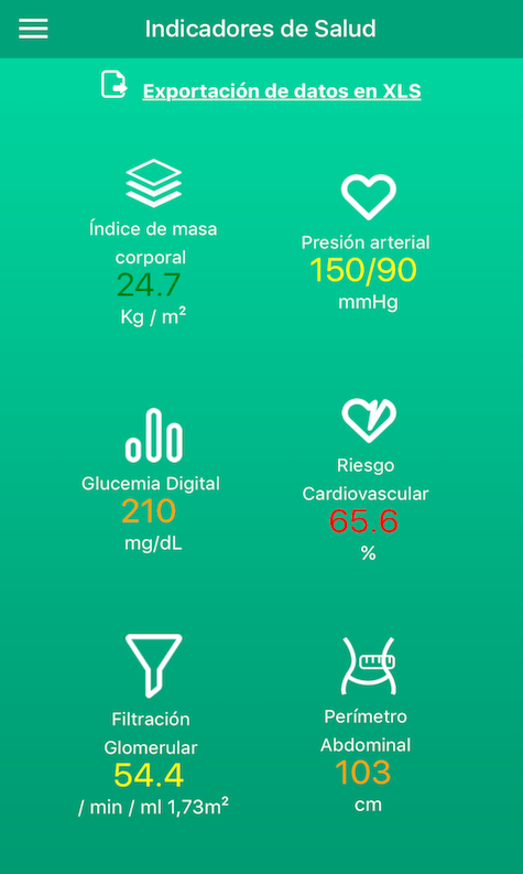 Arrhythmial permite además un estrecho seguimiento de los factores de riesgo, mediante su función de historia clínica y la generación automática de los 6 indicadores de salud cardiovascular. Exporta tu historia clínica en un archivo XLS o llévala contigo a cualquier parte del mundo al que viajes