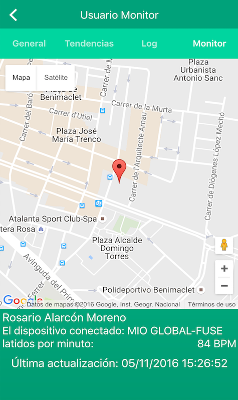 Por lo tanto, es posible recibir alarmas y consultar en tiempo real, la frecuencia cardiaca de un paciente, familiar o amigo, junto a su geolocalización en caso de emergencia (Tras una pérdida de consciencia por ejemplo)