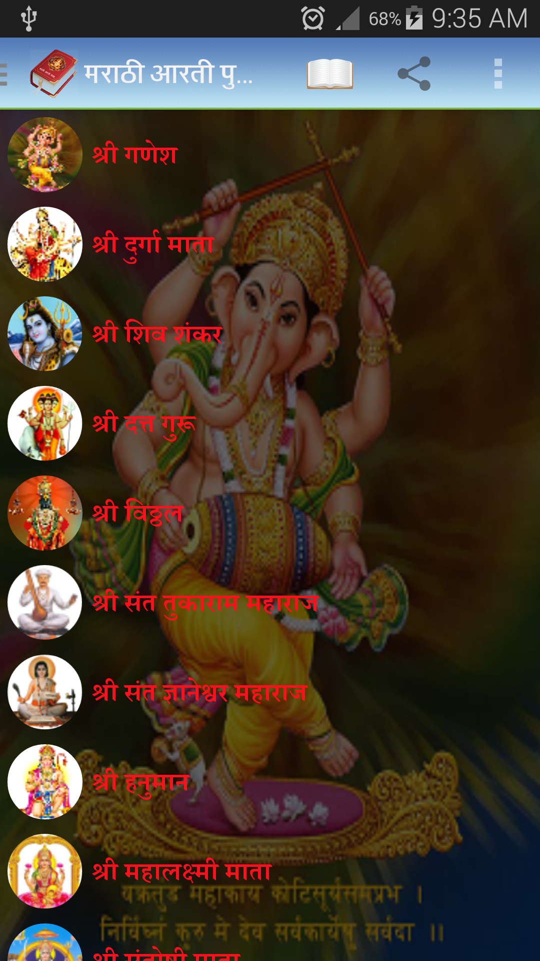 Arti Book Marathi (Package Name: com.mdb.artibook) is developed by MDB Systems and the latest version of Arti Book Marathi 4.1 was updated on October 11, 2014. Arti Book Marathi is in the category of Lifestyle. You can check all apps from the developer of Arti Book Marathi. Currently this app is for free. This app can be downloaded on Android 2.3.2+ on APKFab or Google Play. All APK/XAPK files on APKFab.com are original and 100% safe with fast download.