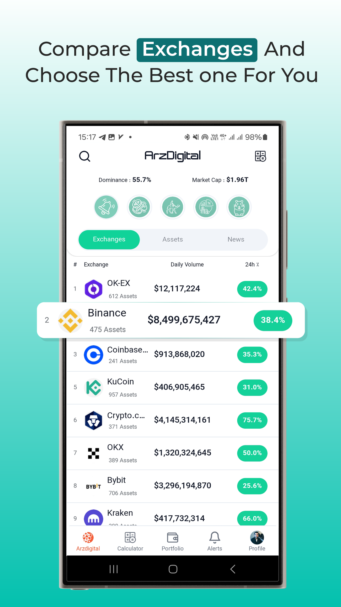 Arzdigital (Package Name: com.arzdigitalnew) is developed by Arzdigital Team and the latest version of ArzDigital: Track & Buy Crypto 3.2.2 was updated on September 28, 2025. ArzDigital: Track & Buy Crypto is in the category of Finance. You can check all apps from the developer of ArzDigital: Track & Buy Crypto. Currently this app is for free. This app can be downloaded on Android 6.0+ on APKFab or Google Play. All APK/XAPK files on APKFab.com are original and 100% safe with fast download.