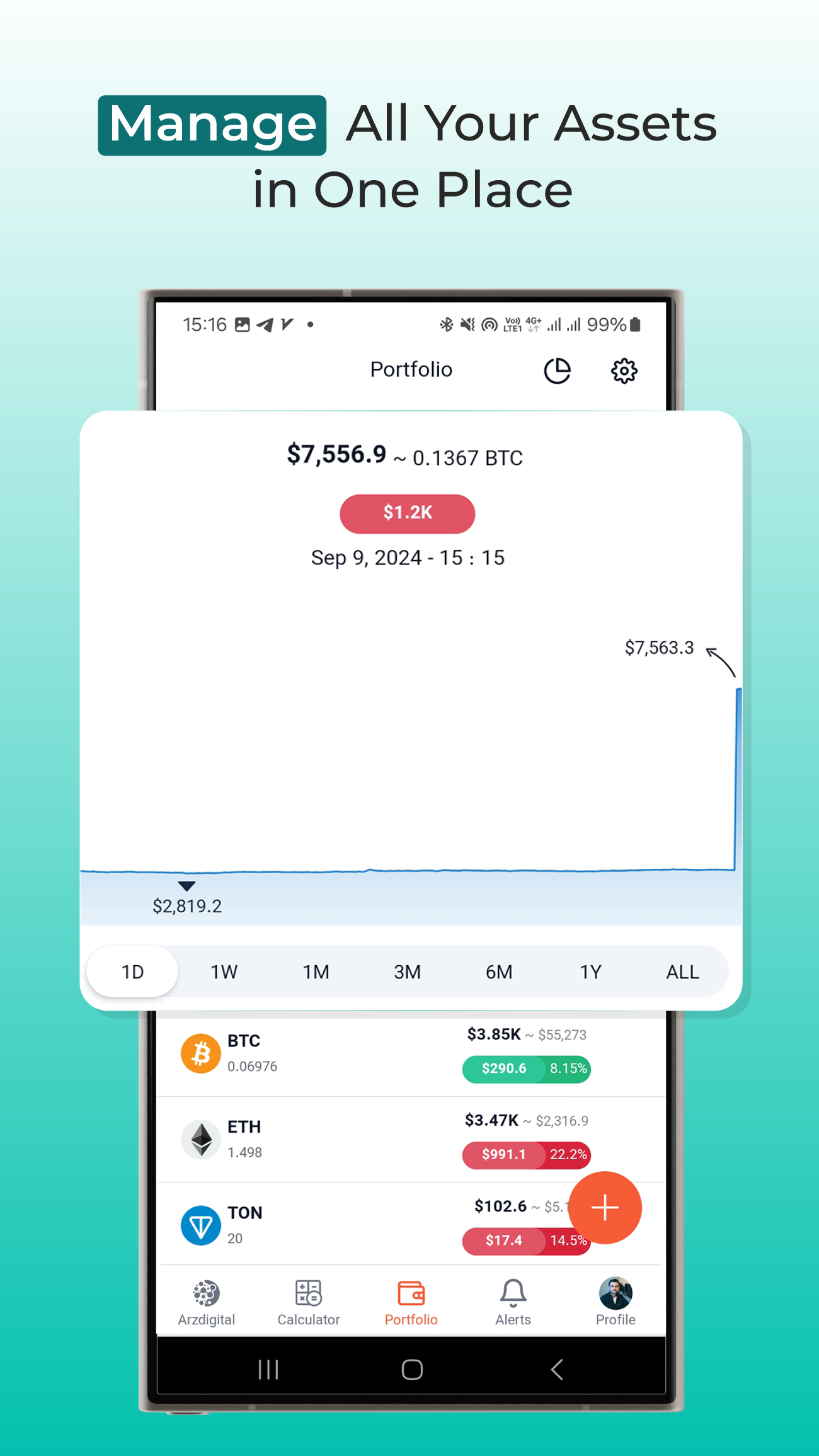 Dive into the exciting world of cryptocurrency with ArzDigital! Your all-in-one solution for tracking, trading, and discussing digital assets. Key Features: • Real-time prices: Stay updated on Bitcoin, Ethereum, and other top cryptocurrencies • Market insights: Access the latest blockchain news and crypto trends • Smart portfolio: Easily track and manage your investments • Buy/Sell alerts: Never miss a trading opportunity • Persian community: Connect with fellow crypto enthusiasts in your language • User-friendly interface: Perfect for both beginners and experienced traders ArzDigital keeps you ahead in the fast-paced crypto market: - Monitor price movements instantly - Create custom watchlists for your favorite coins - Set personalized price alerts - Read curated news from trusted sources - Engage in discussions about market trends and investment strategies Whether you're a casual investor or a seasoned trader, ArzDigital provides the tools you need to make informed decisions in the cryptocurrency space. Our vibrant Persian community offers a unique platform to share insights and learn from others. Stay connected to the pulse of the crypto world – download ArzDigital today and join thousands of users already benefiting from our comprehensive crypto companion!