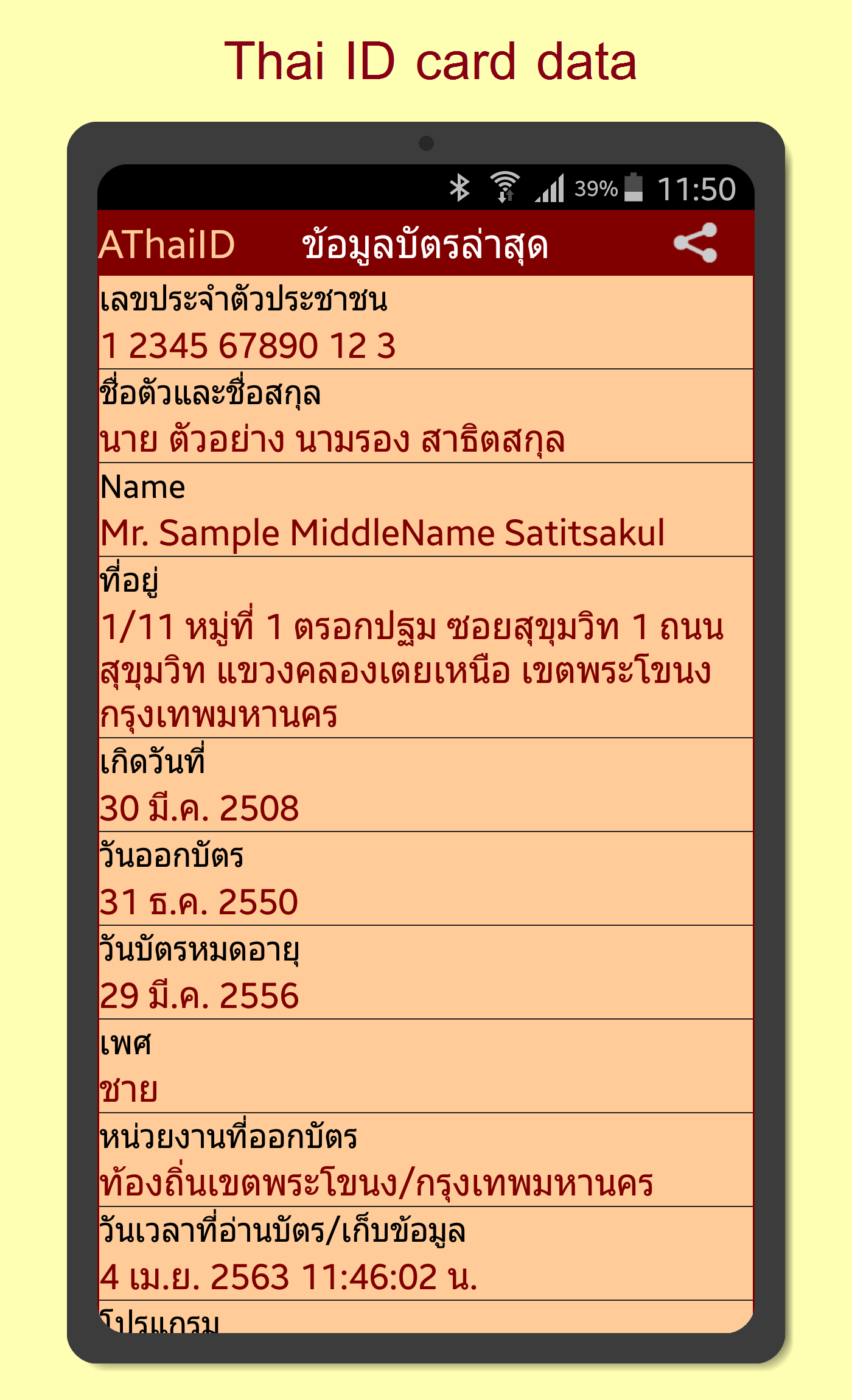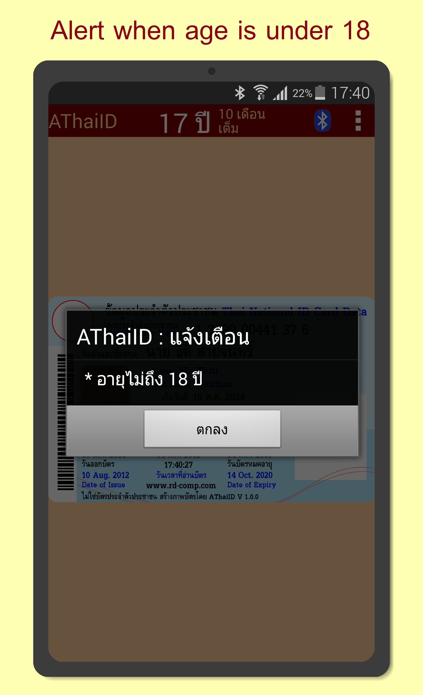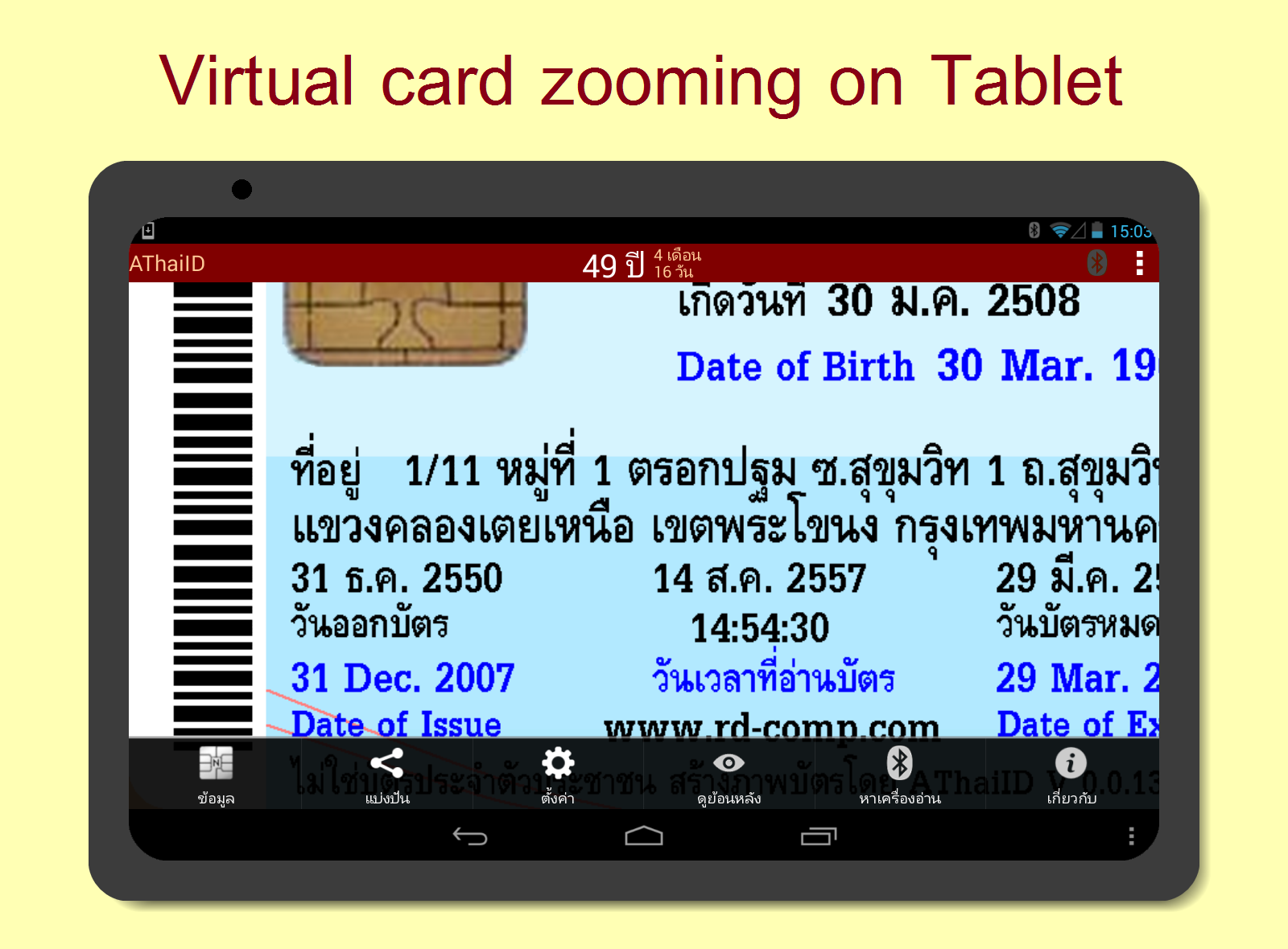 • Please load AThaiID from Google Play to try it. You don't need a card reader for testing.