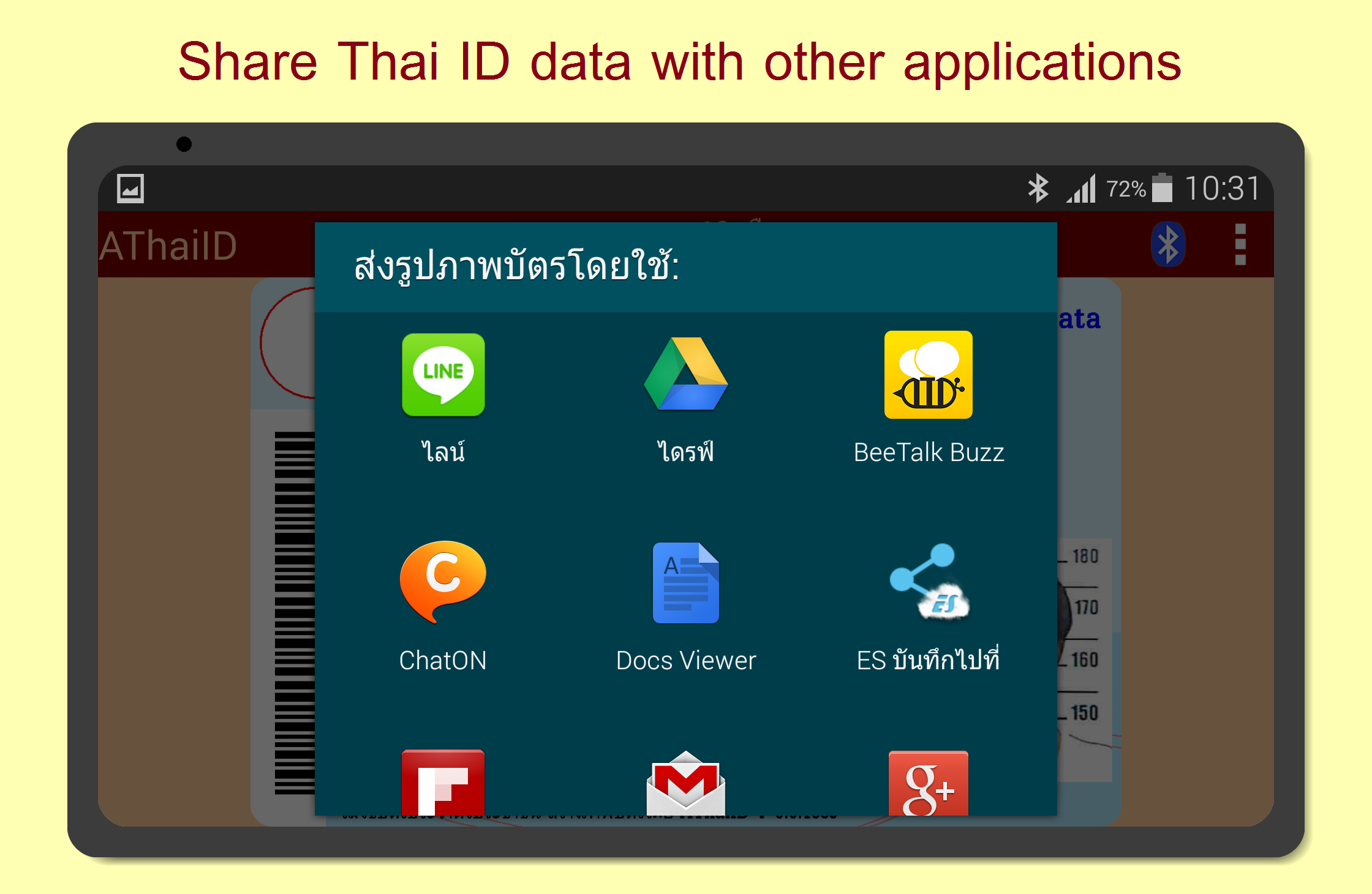 • Read and record data of Thai ID cards from mobile and tablet, don't need writing by hand.
