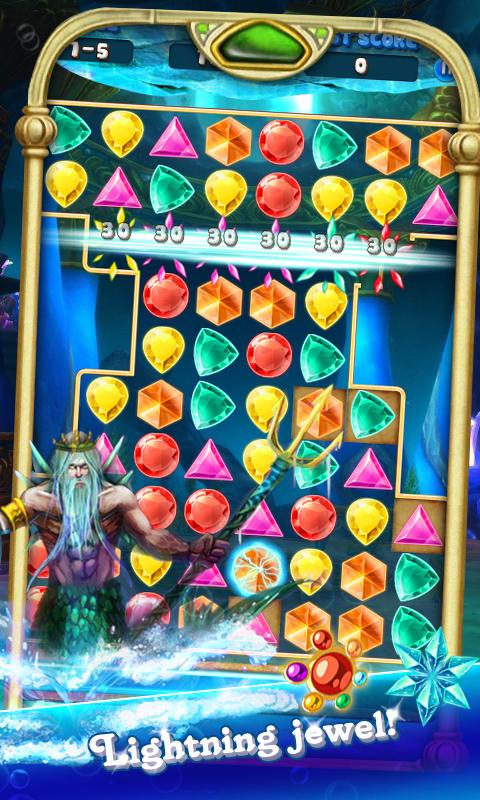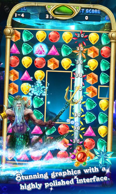In ancient Atlantis, large collection of ancient treasures, waiting for heroes to explore. You need pass every level and get the star of ocean. Try to get all stars in each level. Game Features: - More than 100 levels and 3 scenes in the game. - Easy and fun to start but a challenge to fully master - Stunning graphics with a highly polished interface - Match 4 jewels can win the lightning jewel and 1 lighting. The lightning jewel can eliminate treasures in one row. - Match 5 jewels in cross pattern to generate a bom jewel. The jeweled bomb can eliminate the jewels around. - Match 5 jewels horizontally or vertically can color-changing jewel. The Color-changing jewel can eliminate to any other colored jewels. - The time jewel can extend the playing time. How to play: - Match 3 or more jewels or treasures. - Match the jewels until the board transparency,the star of ocean will appear. - Make the heart of ocean down to last line to pass the level. - Eliminate the jewels quickly can get extra scores.