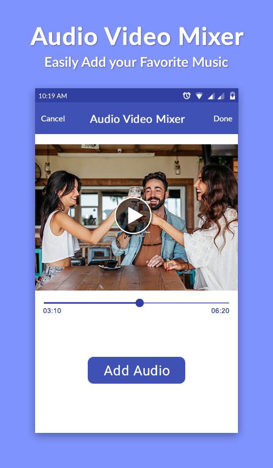 Audio Video Mixer (Package Name: com.di.audiovideomixer) is developed by Photo Editor Solution and the latest version of Audio Video Mixer 1.3 was updated on September 2, 2019. Audio Video Mixer is in the category of Video Players & Editors. You can check all apps from the developer of Audio Video Mixer and find 11 alternative apps to Audio Video Mixer on Android. Currently this app is for free. This app can be downloaded on Android 4.1+ on APKFab or Google Play. All APK/XAPK files on APKFab.com are original and 100% safe with fast download.