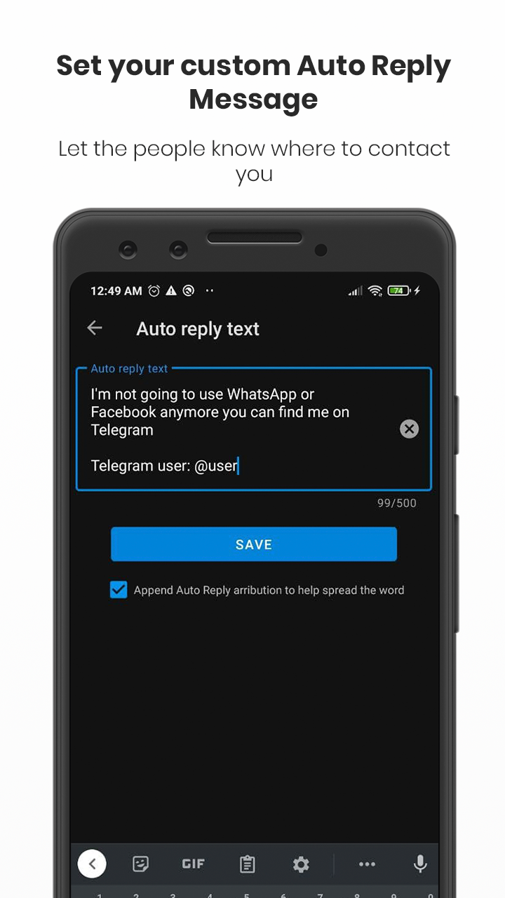 WhatsApp's recent privacy policy changes have triggered a huge migration to more privacy friendly apps like Signal and others. But most of us find it difficult to delete WhatsApp because everyone else uses it. Auto Reply tries to make your migration easier by letting your friends automatically know that you are moved to another app. Just set an auto reply message something like “I am not using WhatsApp anymore. Please use Signal or Telegram…” and let it do the work for you.