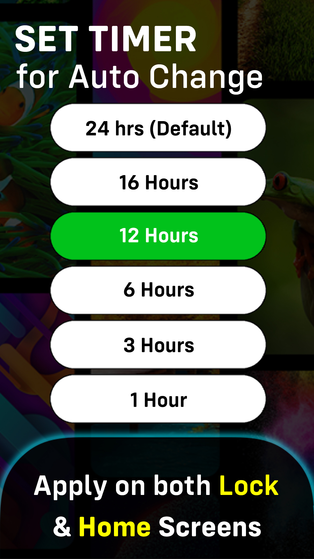 🌟 See a new Wallpaper every time you use your phone 🌟 Auto Wallpaper Changer App for all Android phones allows you to change the wallpaper on your home screen and lock screen automatically after a predefined time duration. You can choose the wallpaper category of your choice to set it for auto changer and can also set the timer to change the wallpaper on your phone. Features: ⭐️ Set Timer - You can select from multiple timer options available. For e.g. 1 hour, 3 hours, 6 hours, 12 hours or 24 hours. You can change the timer duration anytime after activating the auto wallpaper changer by clicking on the Clock icon on top right corner of the app. ⭐️ Category-wise Wallpaper Changer - Choose your favorite category to set it for auto changer. There are more than 25 categories of wallpapers to choose from, so pick your favourite category and you’ll get a new wallpaper image each day. Some of the categories available are Nature, Abstract, Outer Space, Cute Dogs, Beaches, Lock Screen Backgrounds, Minimalism, Under Sea, AMOLED, Aurora, Flowers, Wild Life, Nature Live Wallpapers and many more ... ⭐️ Battery Saver - This application is optimized to consume minimum battery power. So, don’t worry and use the wallpaper changer app without any problem at all. ⭐️ Add Live Animation Effects - Add amazing animation effect to your wallpapers like water touch ripple effect, edge lighting live wallpaper, double wallpapers for home screen and lock screen, video live wallpapers and 3D Parallax wallpapers. ⭐️ 4K Wallpapers / Ultra HD Quality - Each wallpaper in this application is of 4K resolution and fully adapted to suit your device screen. We are confident that you will definitely like the collection of wallpapers in our app. ⭐️ Daily Updates - Enjoy our ever growing collection of high quality wallpapers that make you happy everyday. New wallpapers and categories are updated every day and week. Start each day fresh with our beautiful wallpaper changer app; and don't forget to give us a review of Wallpaper Changer App