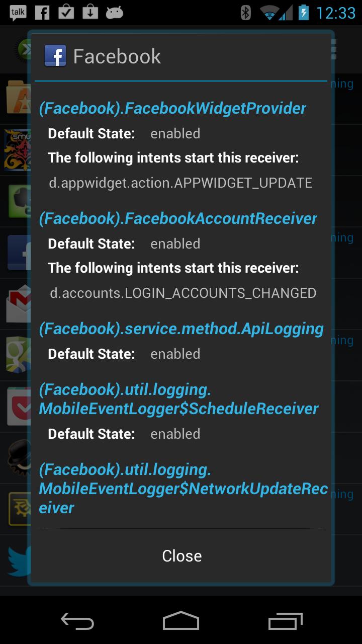 Disabling activities, services and receivers can cause some apps to no longer work properly. Please use this app with caution. There is a feature in the app to allow you to restore all the receivers to their default state.