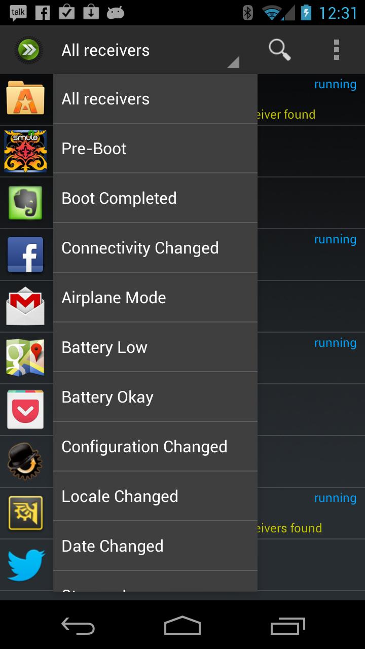 Your apps can register receivers for certain events. Some of these events include when your phone boots up, when your data connection changed, if you have bluetooth enabled or you took a new picture. AutoStart Manager lists all these receivers and allows you to disable them with a click of a button!