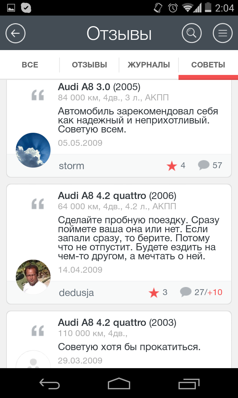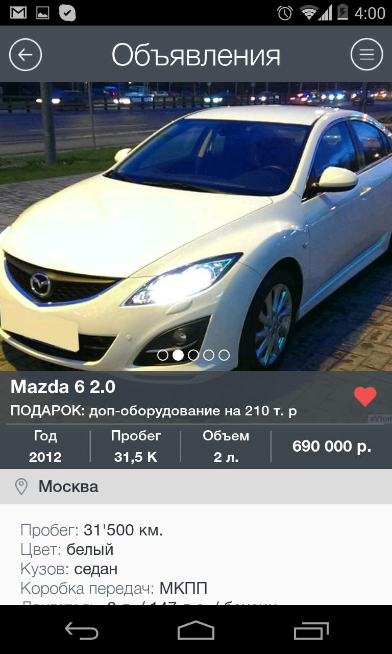 Покупайте, продавайте, комментируйте, узнавайте, оценивайте, советуйтесь! Получите доступ к уникальному контенту и сервисам одного из крупнейших порталов автомобильного Рунета - Автомаркет.Ру! - Отзывы об автомобилях с комментариями. - Каталог автомобилей с техническими характеристиками. - Советы покупателям от автовладельцев нужной Вам модели автомобиля. - Возможность комментировать отзывы и бортовые журналы. - Объявления о продаже транспортных средств (легковые, грузовые, коммерческие, мото, спецтехника, квадроциклы, снегоходы, автобусы, прицепы, автодома, водная техника,) в России. - Размещение объявлений о продаже любых транспортных средств! / Покупайте и продавайте / Размещайте объявления прямо с Вашего смартфона или планшета в считанные минуты! Продуманный поиск с большим количеством фильтров. Сохраняйте понравившиеся объявления в "Избранном"! Всегда актуальная собственная база данных объявлений, которые разместили сами продавцы. Мы не агрегируем сомнительные объявления со всего Рунета в погоне за их количеством, предлагая вам миллионы объявлений :) / Отзывы и советы / 30 000 отобранных отзывов и бортовых журналов владельцев с горячими комментариями всегда под рукой! Выбираете автомобиль, но нет времени читать массу отзывов? Советы покупателям от реальных владельцев нужной Вам модели помогут сделать правильный выбор! / Каталог и характеристики / Более 14 лет непрекращающейся работы воплотились в одном из самых полных в мире каталогов технических характеристик автомобилей и не только. Просто попробуйте и все поймете сами! :)