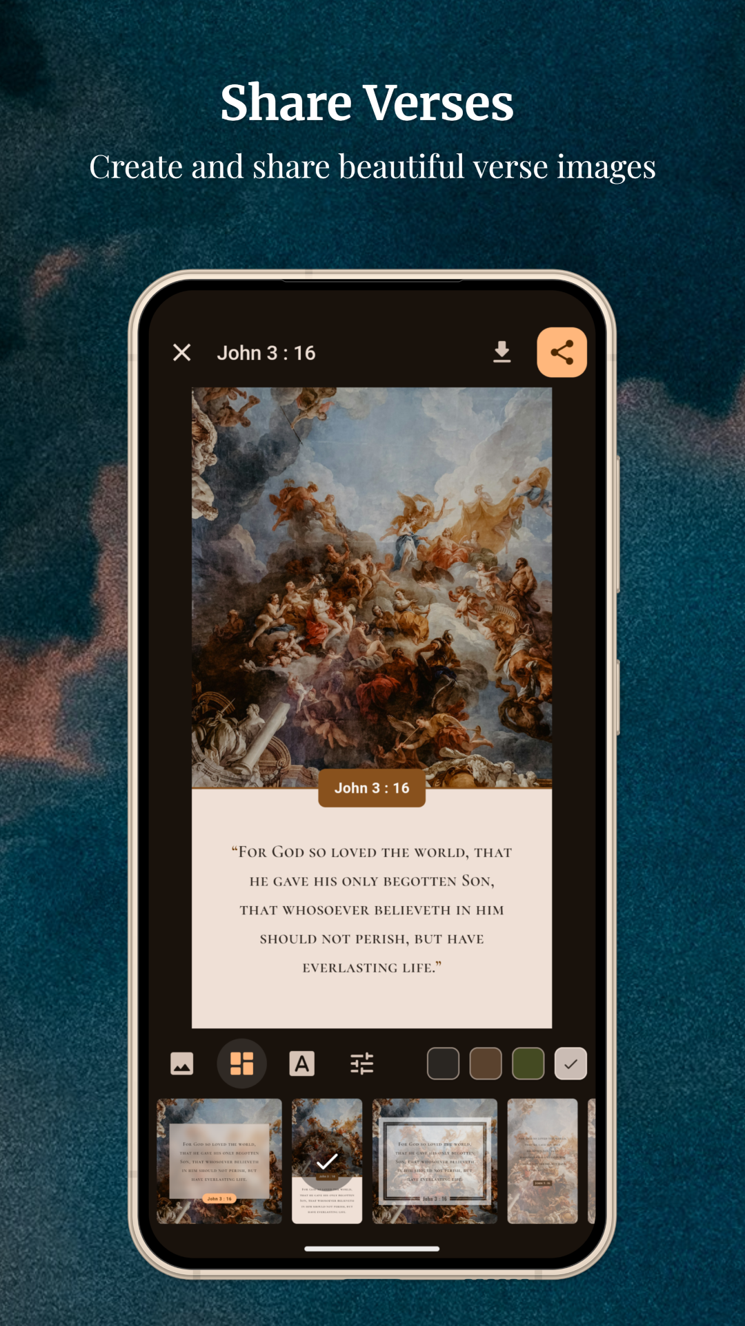 Discover God's Word like never before! ✨📖 Continue your spiritual journey with our Bible App. 🙏 What's new in this update: - In addition to creating and sharing Bible verses using your own images, now the app remembers all your custom images for easy reuse. - Added more image styles to share your favorite verses. - Bug fixes and small interface improvements.