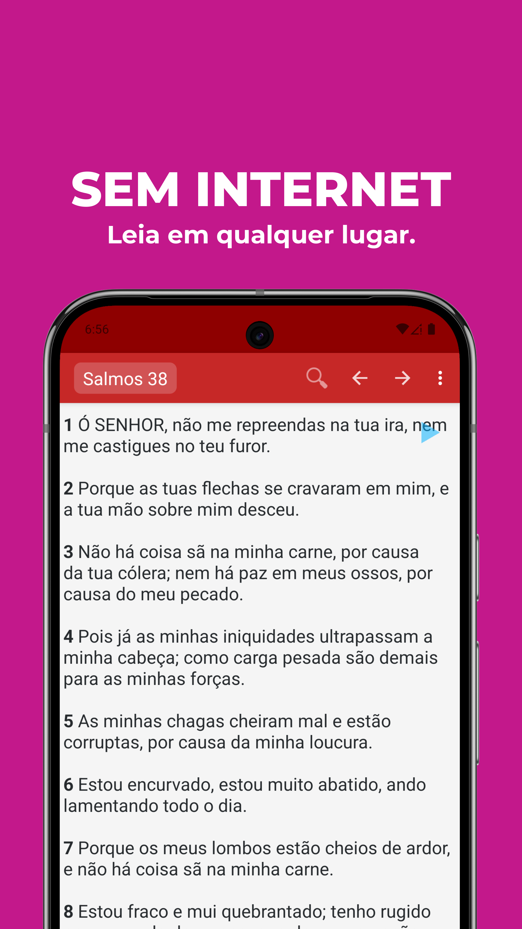 Take the Bible with you, completely free and without internet. Read God's Word anytime, anywhere, and strengthen your faith every day with the Verse of the Day and the Article of the Day. This app was developed to help you read, listen to, and understand the Bible simply, quickly, and accessibly on your mobile phone. 📱 Why use this Bible app? Unlike a traditional Bible, here you will always have God's Word with you. Wherever you are, you can read or listen to the Bible at any time. ✔️ Works without internet ✔️ No registration required ✔️ Lightweight, fast, and easy to use ✔️ Includes audio (text-to-speech) In addition, the integrated search engine allows you to find verses quickly, even if you only remember part of the text. ✨ Daily Content to Strengthen Your Faith Every day you will receive content designed to inspire and draw you closer to God: 📖 Verse of the Day Receive a daily Bible verse selected to inspire and accompany your spiritual journey. Within the app you can: • Read the verse calmly • Access a related article • Read the complete chapter • Share easily 📝 Article of the Day Receive a daily Christian reflection based on the Word of God. • Clear and comfortable reading • Edifying and practical content • Easy to share 📚 Previous Articles Access articles from the last 8 days. This way, you won't miss any important messages, even if you don't access the app on a given day. 🔍 Offline Bible Search Find verses easily by typing words or phrases. • Works completely offline • Fast results • Ideal for Bible study 📰 Additional Christian content In addition to the Article of the Day, the app offers other content on: • Christian life • Spiritual reflections • Christian music, films, and resources • Explore new content every time you use the app. 🔊 Audio Bible (text-to-speech) Listen to the Bible whenever you want. Ideal for: • Work or commute moments • People with visual impairments • Those who prefer to learn by listening