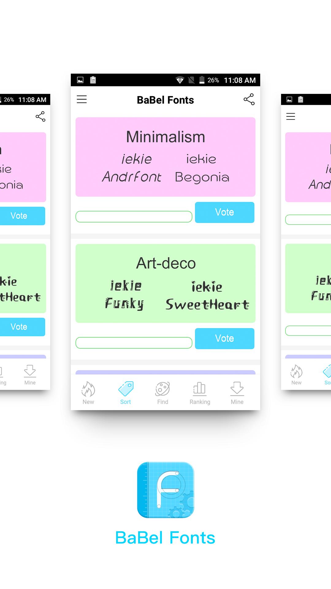 “SHARE & FIND FONTS HERE”. Frequently Asked Questions1. I didn’t download Babel Fonts, why it appears in my phone? Why BaBel Fonts cannot be uninstalled?BaBel Fonts is a system app provided by manufacture in settings in part of models, and sometimes Google Play updates the apps automatically. So you will see it on the homepage after upgrade. Users of these models cannot uninstall Babel Fonts because it exists as a system app. System path: system settings - display - font style, low version app in system in your phone just has basic service and we provide better service in new version.