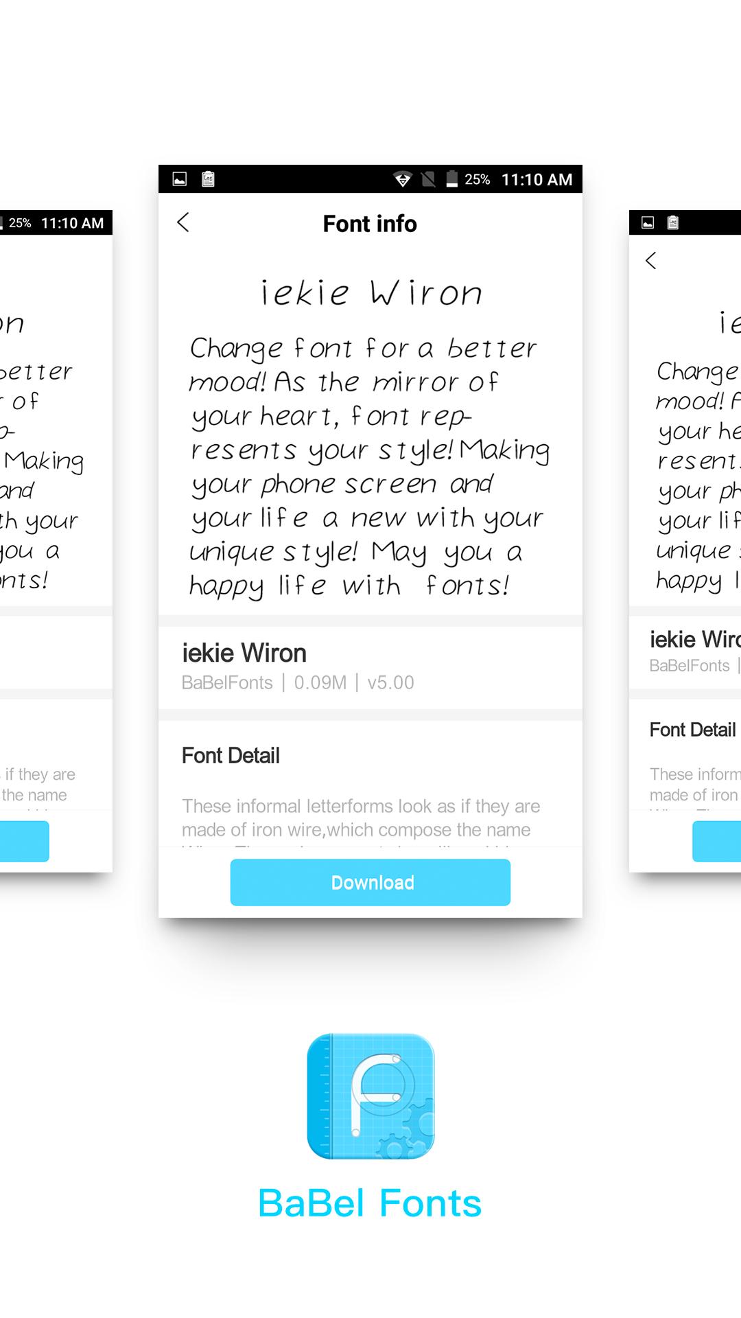 BaBel Fonts is a unique font manager for android devices. BaBel Fonts provide hundreds of stylish fonts, funny, cool, cute, handwriting etc,. It’s easy to use BaBel Fonts, preview the fonts details , and download and use it, then all system fonts will be changed, including the fonts in other app or in browser. In addition, BaBel Fonts support most languages around the world. Download funny fonts you like, and enjoy your funny life!