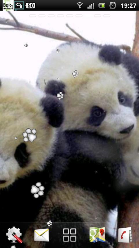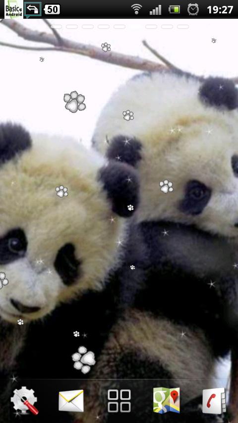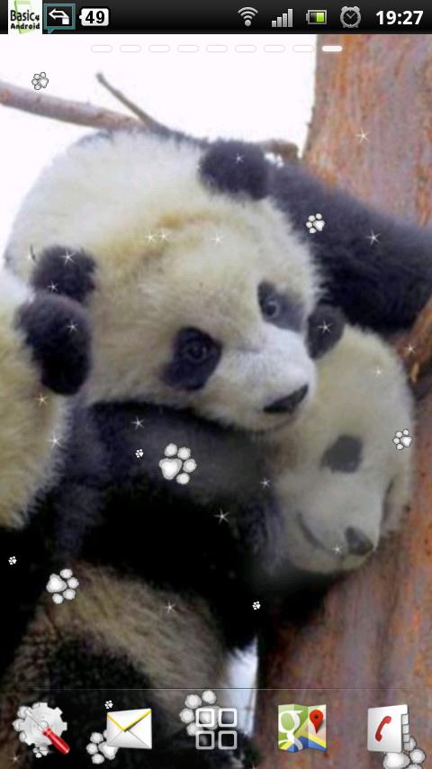 behold the cute baby panda live wallpaper on your android screen. panda has an insatiable appetite for bamboo. get this panda bear live wallpapers and free panda live wallpapers now. a typical animal eats half the day a full 12 out of every 24 hour and relieves itself dozens of times a day. it takes 28 pounds (12.5 kilograms) of bamboo to satisfy a giant panda's daily dietary needs, and it hungrily plucks the stalks with elongated wrist bones that function rather like thumbs. pandas will sometimes eat birds or rodents as well. they reserved and blossoming, this cute animal is so sleepy and fluffy and native to china. wild pandas live only in remote, mountainous regions in central china. these high bamboo forests are cool and wet just as pandas like it. they may climb as high as 13,000 feet (3,962 meters) to feed on higher slopes in the summer season. they can snoozing on the branch and cling onto bamboo tree pandas are often seen eating in a relaxed sitting posture, with their hind legs stretched out before them. they may appear sedentary, but they are skilled tree-climbers and efficient swimmers. these giant chub is so adorable and sleepy. this is cute pandas wallpaper and panda wallpapers. giant pandas are solitary. they have a highly developed sense of smell that males use to avoid each other and to find females for mating in the spring. after a five-month pregnancy, females give birth to a cub or two, though they cannot care for both twins. baby panda wallpaper. the blind infants weigh only 5 ounces (142 grams) at birth and cannot crawl until they reach three months of age. they are born white, and develop their much loved coloring later. panda bear, extinct baby panda bear are called cubs. panda cubs are usually tiny, white, blind, furless, and weak at birth, and weigh between 85 and 140 g. their eyes open between their sixth and seventh week and when they are about 6 months old, they are weaned from their mother. The giant panda reproduction cycle is a long one. Normally a mother gives birth to a baby panda every two years. However it is not uncommon for a mother to wait three or even four years before giving birth. Females have a litter size of one or sometimes two cubs. Baby pandas are born blind. They are completely helpless and dependant. retina wallpapers. Although they have a very fine coat of hair at birth, newborn cubs may appear pink in color. Their eyes open after they are six to eight weeks old. The baby is very tiny compared to an adult's dimensions. features: hd graphic 720p cool animation