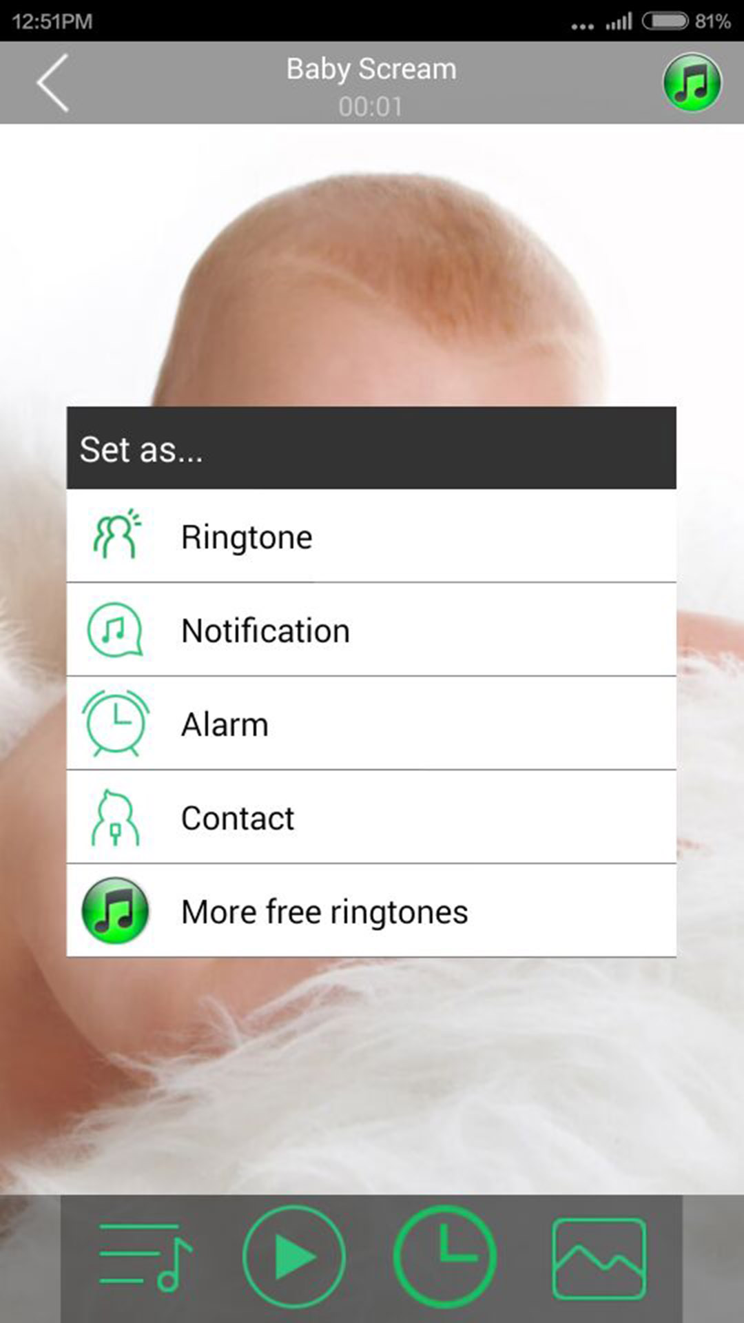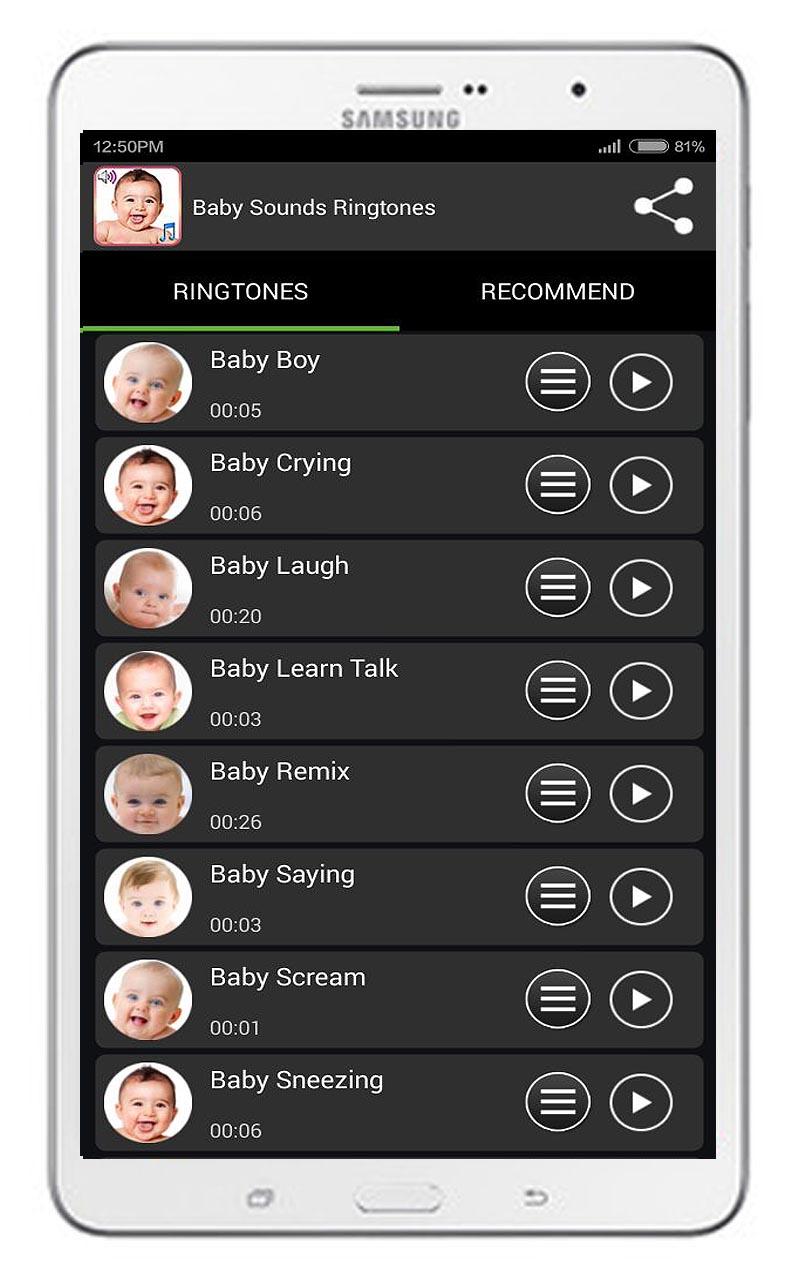 You can set the baby sounds as your ringtone, alarm, contact ringtones or notification!