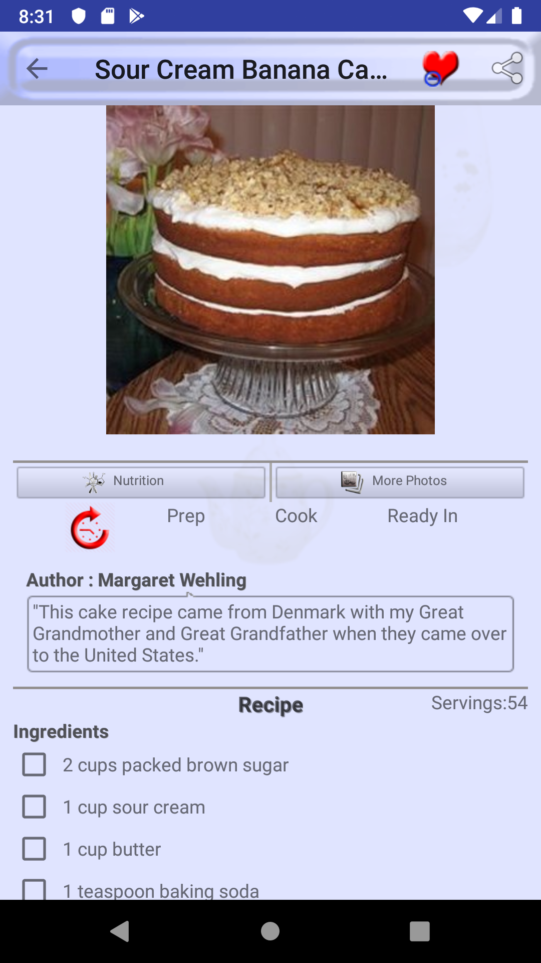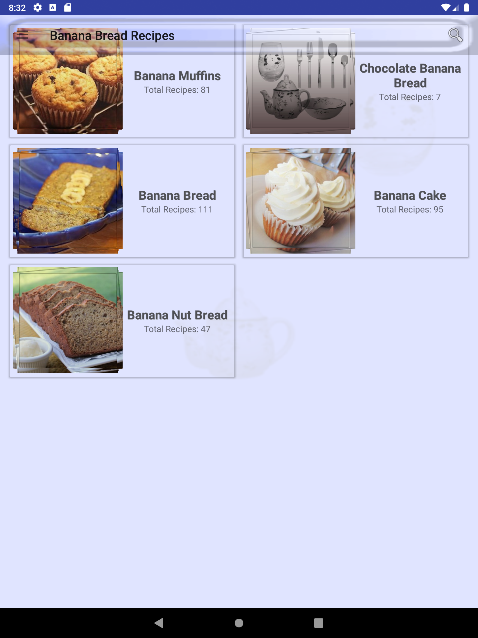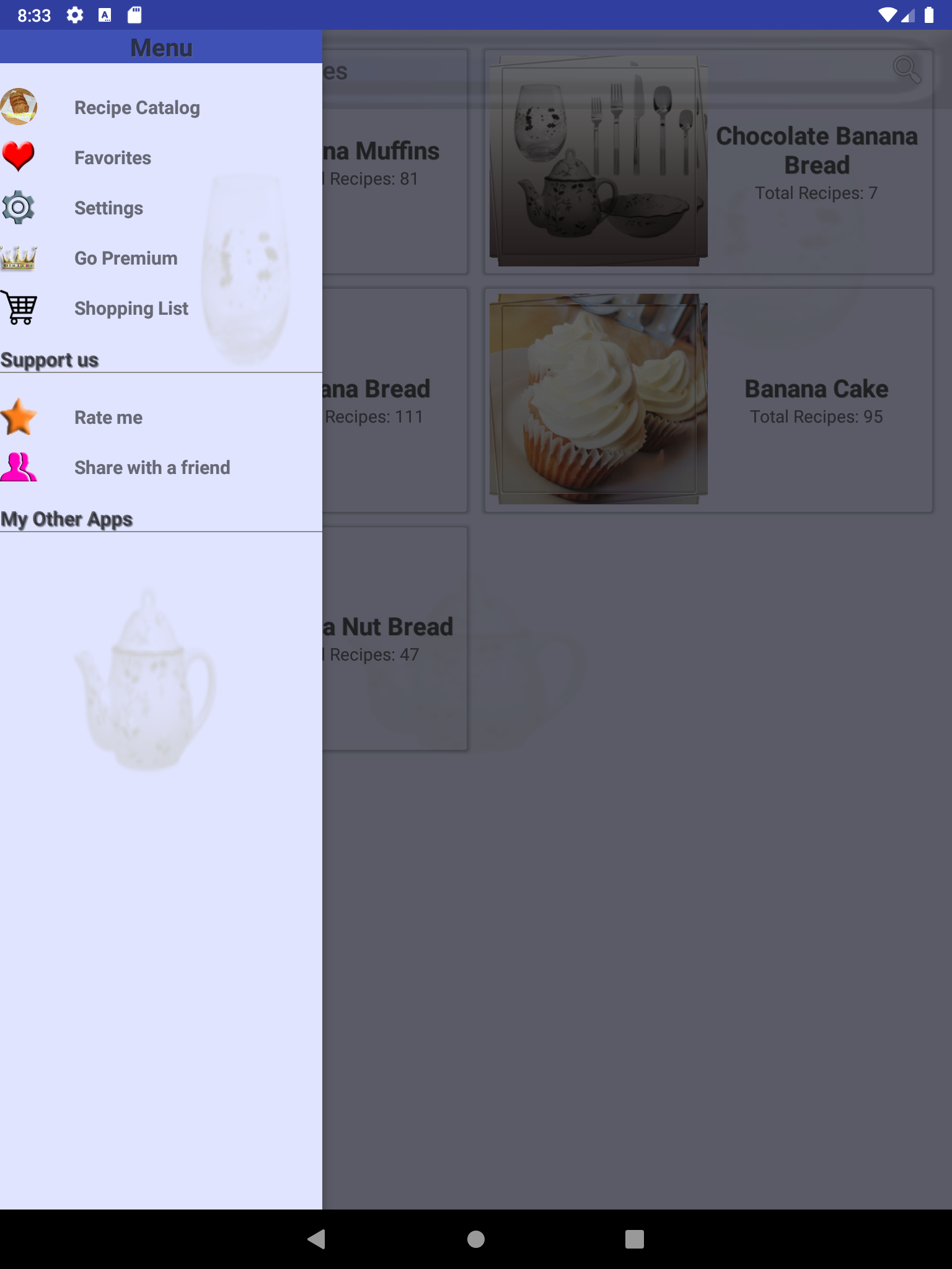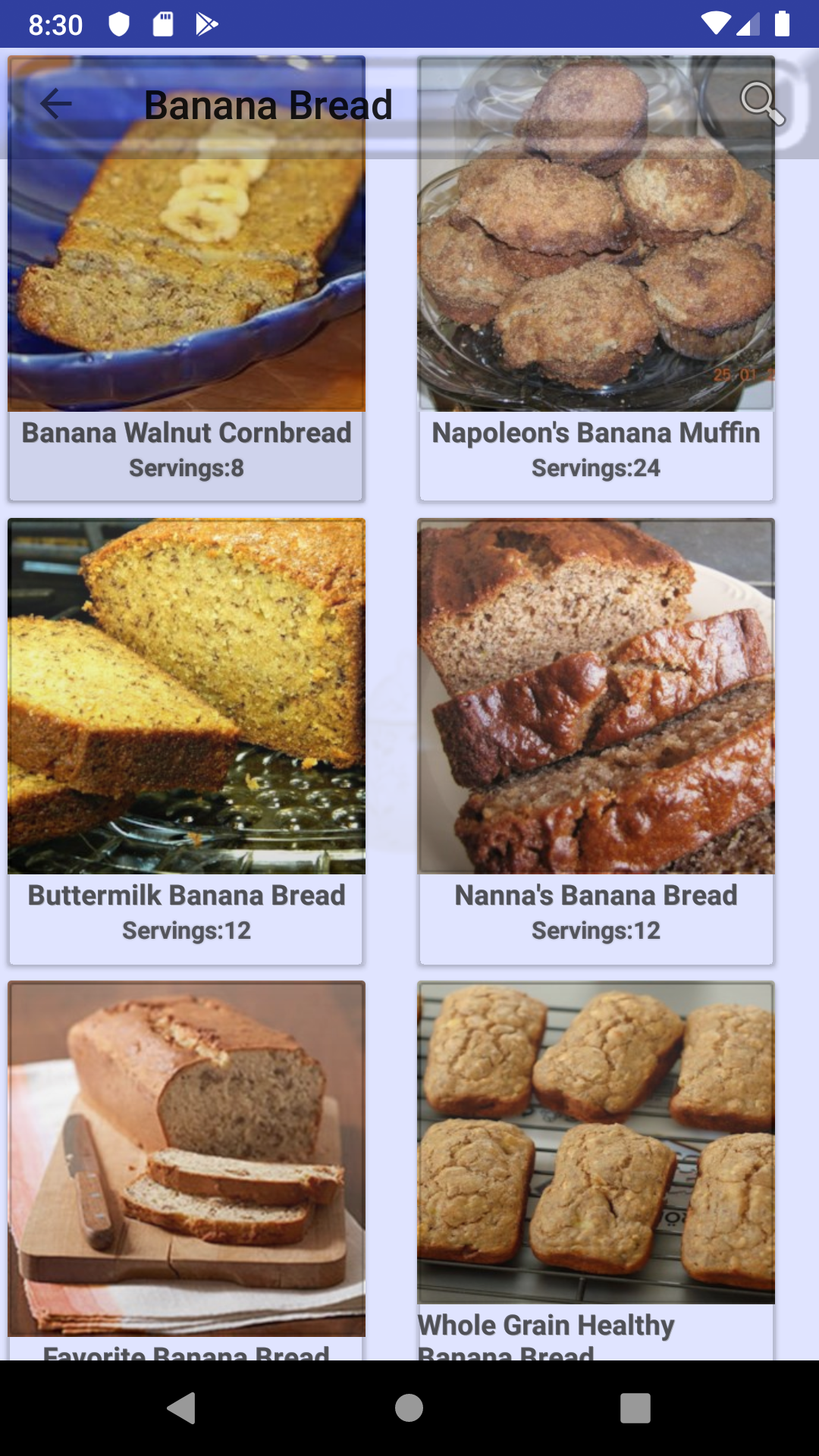 Banana Bread Recipes is a free cookbook app with numerous healthy Banana Bread recipes. All recipes in Banana Bread Recipes can be made easyily and quickly at home. So If you want to be a chef on your own try Banana Bread Recipes and we assure you would not regret. Every TasteBuds recipe app is carefully crafted to include top rated cooking recipes and recipe collections that are both healthy and easy to prepare. Some of the recipe collections in Banana Bread Recipes are : Banana Muffins Chocolate Banana Bread Banana Bread Banana Cake Banana Nut Bread and more... Banana Bread Recipes comes built-in with rich features such as: • SEARCH: Search recipe by name or by recipe collection • SHOPPING LIST: Our Banana Bread Recipes app provides features to manage your shopping list of ingredients. Each ingredient is bound to its own recipe. you can mark an ingredient as purchased (strike-through) or completely delete from your recipe shopping list. • FAVORITES: Mark a recipe as favorite recipe and you will not need to search it again in thousands of recipes we provide in Banana Bread Recipes. All favorite recipes have a dedicated favorite recipes section in menu drawer. • NUTRITION INFORMATION: Almost every recipe in Banana Bread Recipes comes built-in with nutrition information, so you don't need to worry about your nutrition plan for your favorite Banana Bread recipe. • PHOTOS INFORMATION: If you want to see the recipe from different perspectives we got you covered with more photos. • RECIPE TIME: We provide cook time, preparation time, and ready time with servings for each recipe in Banana Bread Recipes. • SHARE: Share your favorite recipes with anyone using any sharing apps you are using such as Facebook, WhatsApp, Email, ... • DEVICES SUPPORT: Almost all android phones and tablets are suppoted with both portrait and landscape mode. So happy cooking with Banana Bread Recipes!