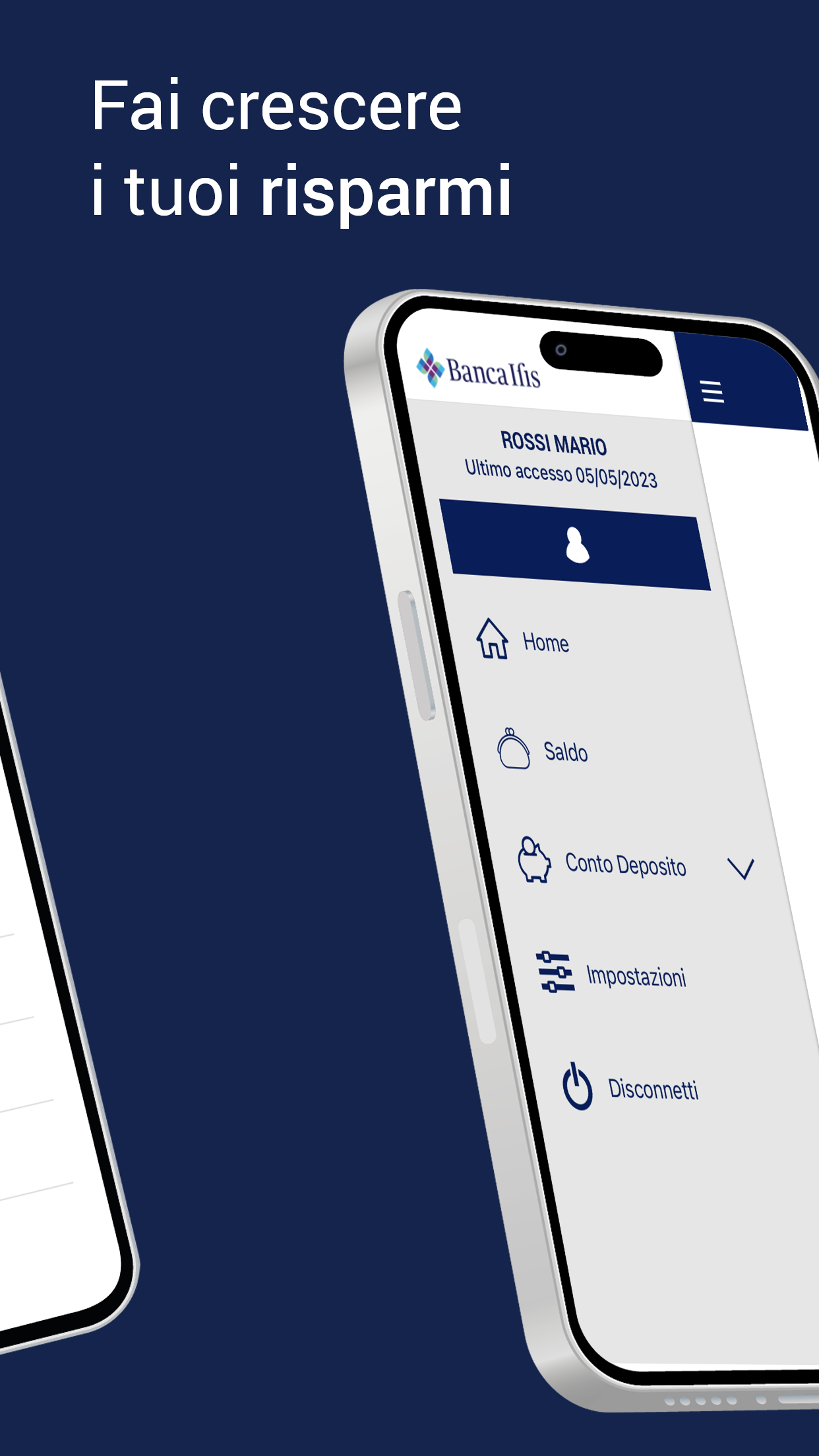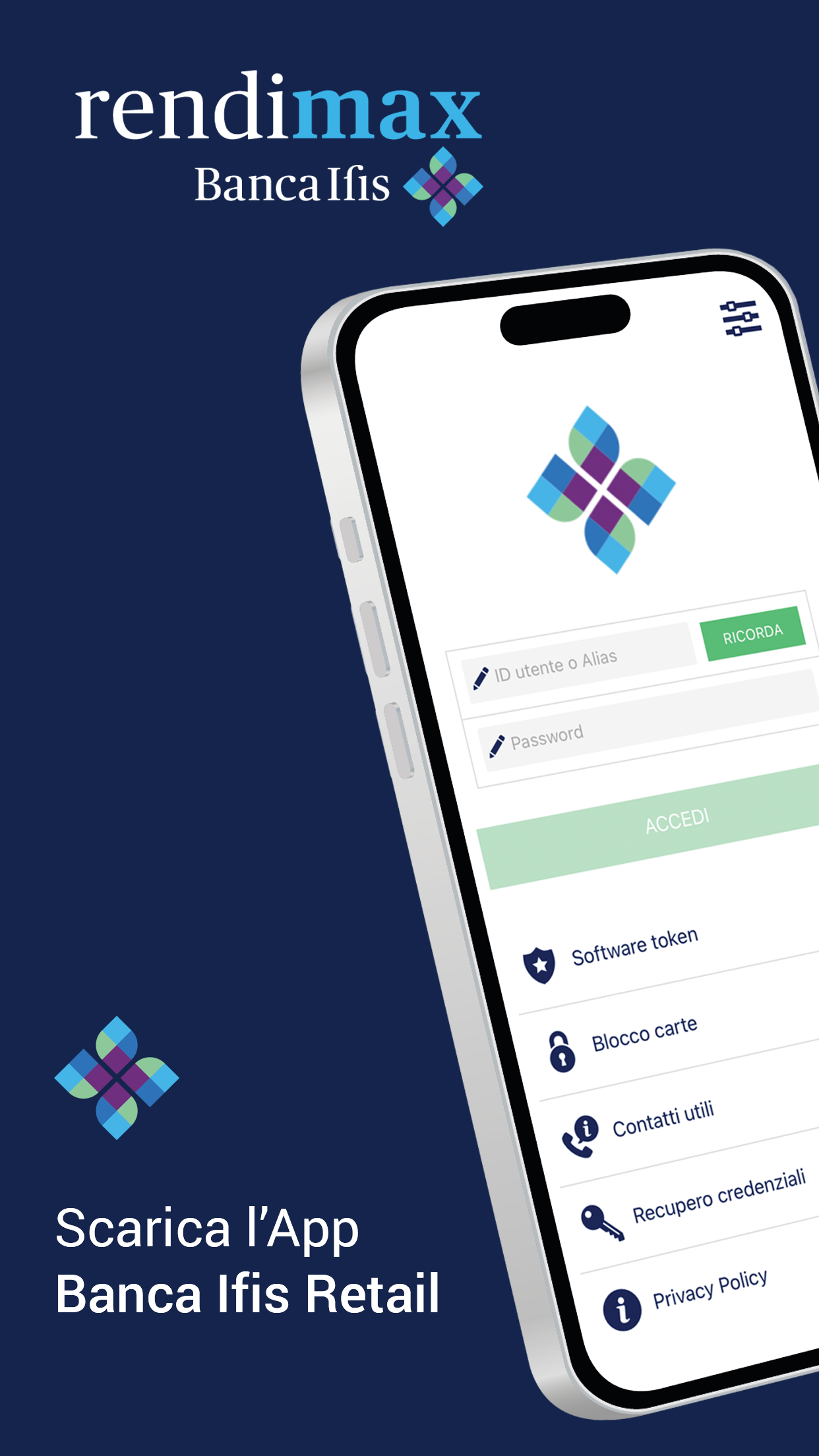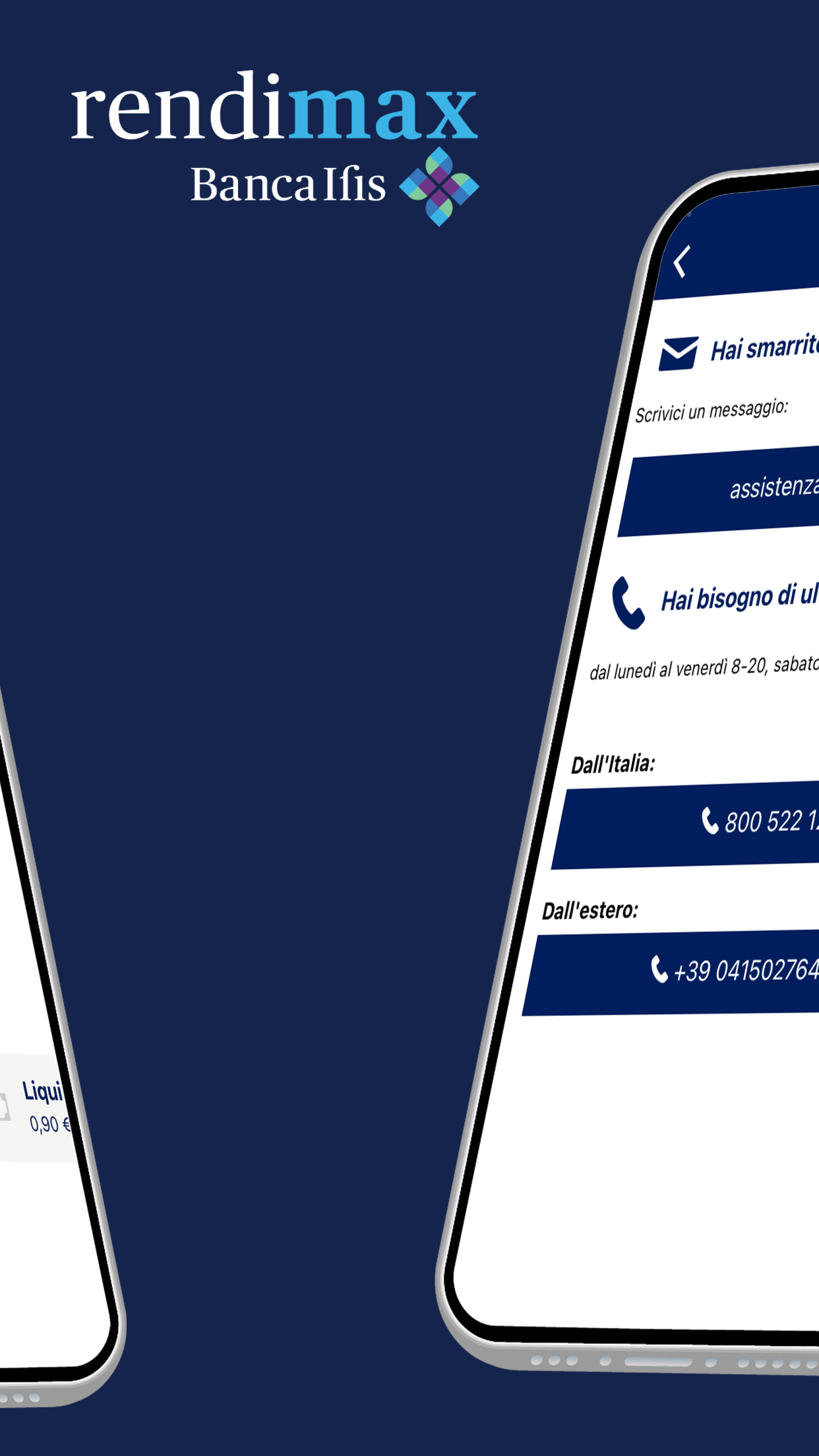 The free Banca Ifis app allows you to access your Reserved Area on the go and carry out the main operations on Rendimax Conto Deposito and Rendimax Conto Corrente, directly from your mobile device. You can also always carry with you: - Communications from the Bank; - Useful numbers for requesting assistance
