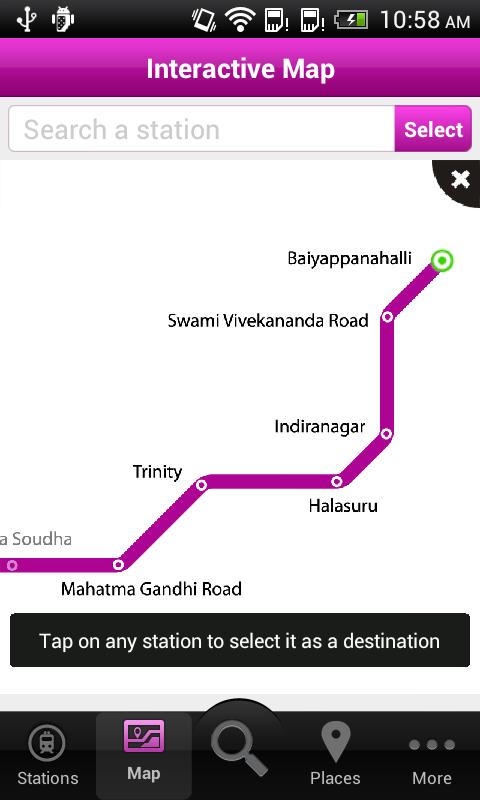 “Bangalore Metro App” by FINOIT is an effort to append convenience and flexibility to National/International tourists and proud Bangalorites by providing essential information related to Bangalore Metro System. It is an offline application, which once installed, provides all the information of Bangalore Metro. It has been designed with a very user centric approach and with some of the most updated features like “Route search”, “search by location”, “search by address”, interactive metro map, Google map, line information, detailed information of individual stations and it also includes recently updated stations and respective fare information.