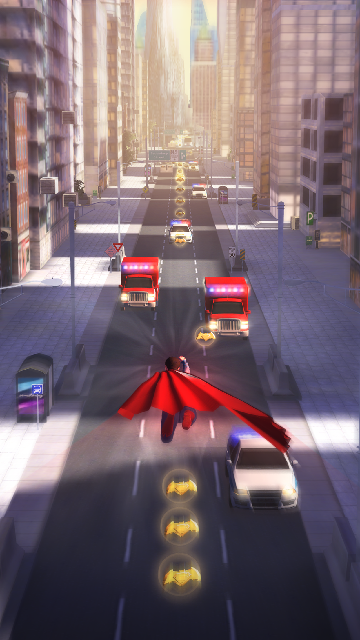 Mankind faces a new threat as darkness falls on Gotham and Metropolis. A personal vendetta has been made, side between Batman or Superman to set the record straight. Race against time and go the distance. Dodge obstacles, collect power-ups and battle against your opponent. Who Will Win is an endless runner and the Official Movie Game for Batman v Superman: Dawn of Justice. * Choose your character, play as Batman or Superman. * Explore your environment within Gotham and Metropolis. * Control the Bat mobile, or fly with Superman. * Collect free gifts when you go the distance. * Stunning graphics and gameplay. * Official Movie Sound Track and and awesome sound effects. * A variety of power-ups and pickups to upgrade. Privacy Policy: http://cloud.wbpapps.com/batmanvsuperman/privacypolicy/