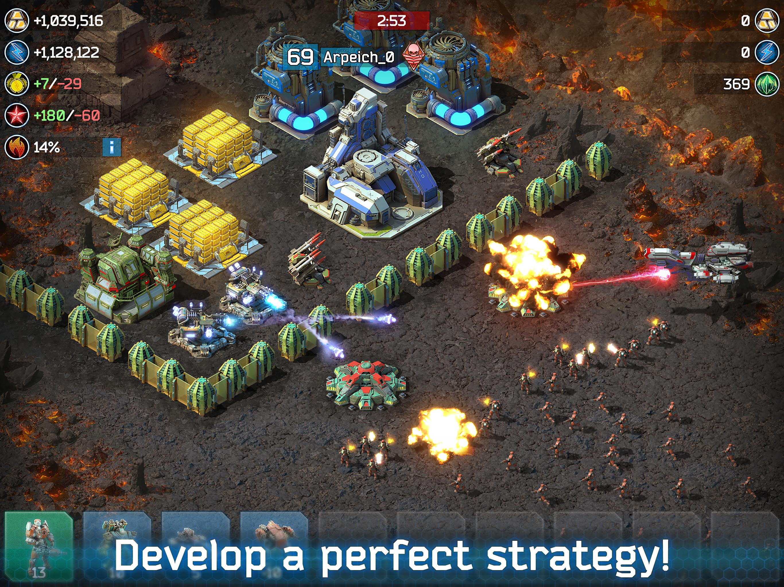 Pilots - start your engines! Marines - take your blasters! Commanders - start the battle! BATTLE FOR THE GALAXY Battle for the Galaxy is an exciting mixture of tower defense, strategy and dynamic battles. Create a powerful army and join corporation. Attack enemies to earn glory and valuable resources. Download Battle for the Galaxy now! Game features: ● Free online strategy game ● PvP with elements of tower defense ● Outstanding art and visuals ● 20+ buildings to construct and upgrade to turn just-survived base into a mighty planetary fortress ● Recruit an army of Space marines, Rocket troopers, giant mechs, Battle cruisers, and a lot of other units ready to fight for you ● Create Corporations with other players and unite to prevail against the others ● Participate in every imaginable kind of wars and get great prizes: win the Leagues, Tournaments, duels and Raids! ● Complete daily challenges to earn awesome rewards, login daily and collect valuable bonuses. ● Never get bored again because we’re working our best to update the game making it more exciting to play! Required permissions: ● Modify or delete the contents of your SD card ● Read the contents of your SD card In order for the game to function properly we need permission to read and write to your SD card. This is required to be able to download and store additional game content like units, maps, buildings and so on.