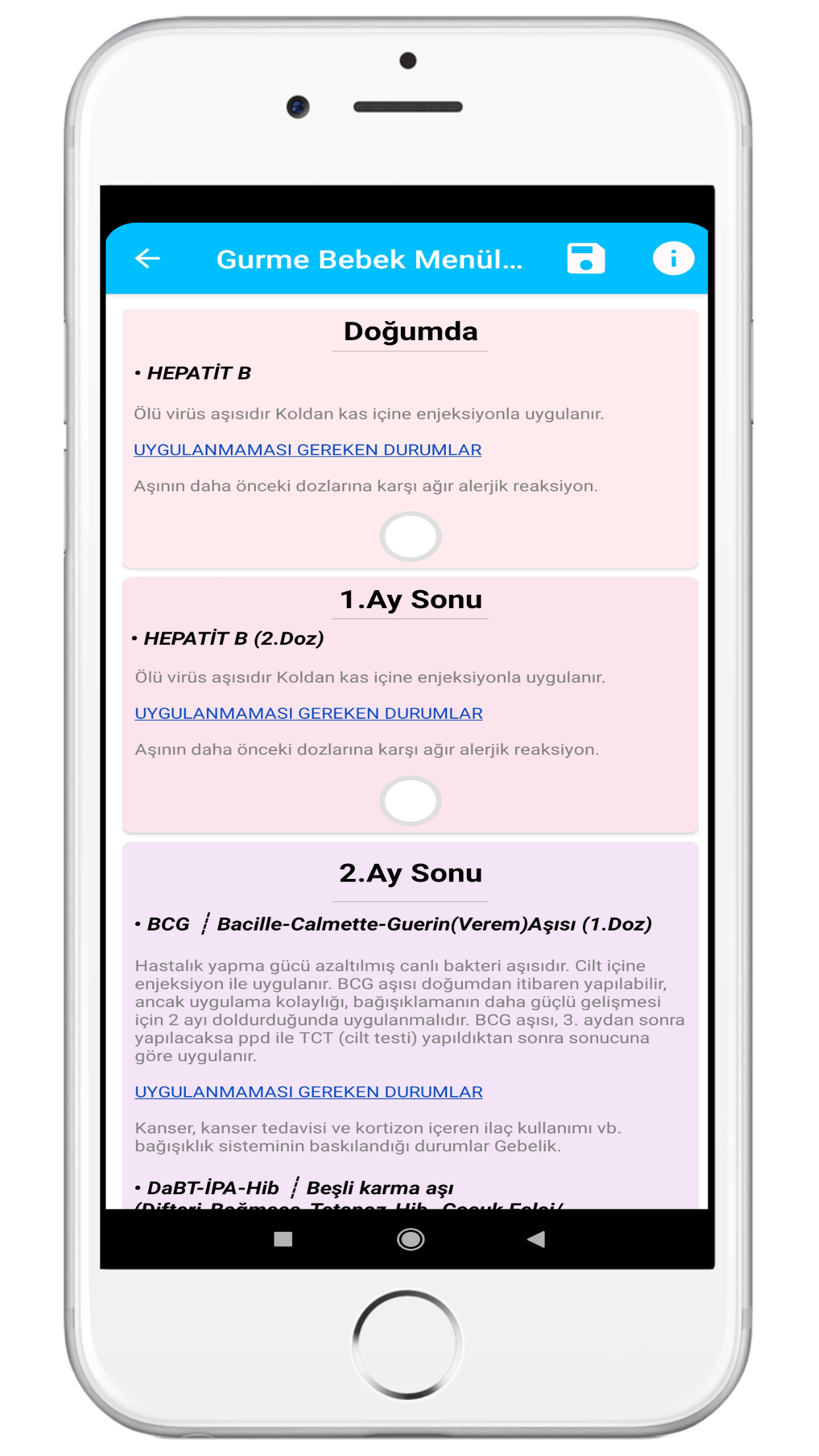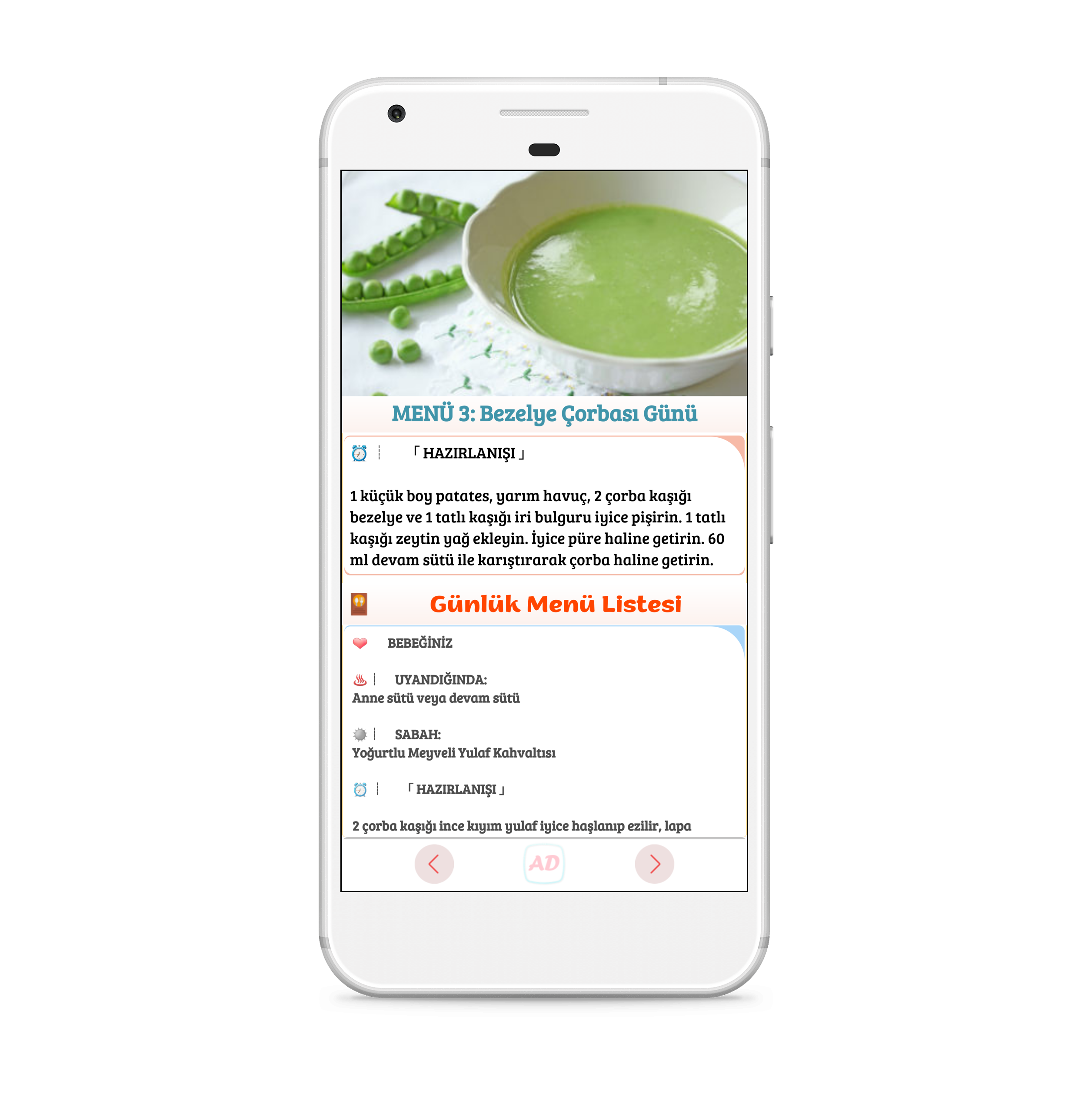 ✎ WHAT IS A RIGHT NUTRITION? ☷ It is of vital importance for your baby's healthy nutrition, development and survival throughout his life. After weaning, start feeding your baby fresh, organic if possible, unprocessed food. Thus, when he reaches the age of 1, he will reach a balanced and healthy diet. ✔ With This Application; ● When your baby enters the 6th month, that is, when he / she starts solid food, it will help you to feed your baby in a healthy way with all the information you need about what and how to give your baby month by month. ● You can find solutions to the problems your baby experiences with expert opinions. ● NUTRIENTS; Check the suitability of the foods suitable for your baby's month. ● Your baby has switched to solid food, a new excitement begins, now download it for free ... 📌 Some titles from the application content; • NUTRIENTS; Check the suitability of the foods suitable for your baby's month. • Baby development chart, • Height ┆ Weight tracking chart, • Special menus for nursing mothers, • 5 Recipes for 5 Days, • Expert opinions ┆ Up to 6-24 months, • 6-24 Month Menus, • Recipes from 6-24 months, • 6-24 Breakfast Recipes, • 6-24 Drink Recipes, • Don't Let The Baby Cry (Soothing Music), • MY FIRST BOOK (Preschool Education), • More coming soon ... 📣 Hello, there is an ad-free version of the application. Click here to purchase and support ... https://play.google.com/store/apps/details?id=jaquevrosa.bebekmamapro&gl=TR ✉️ If you want to follow our Gourmet Baby Development page on Instagram, our address is as follows; https://www.instagram.com/bebekmenuleri/?hl=tr