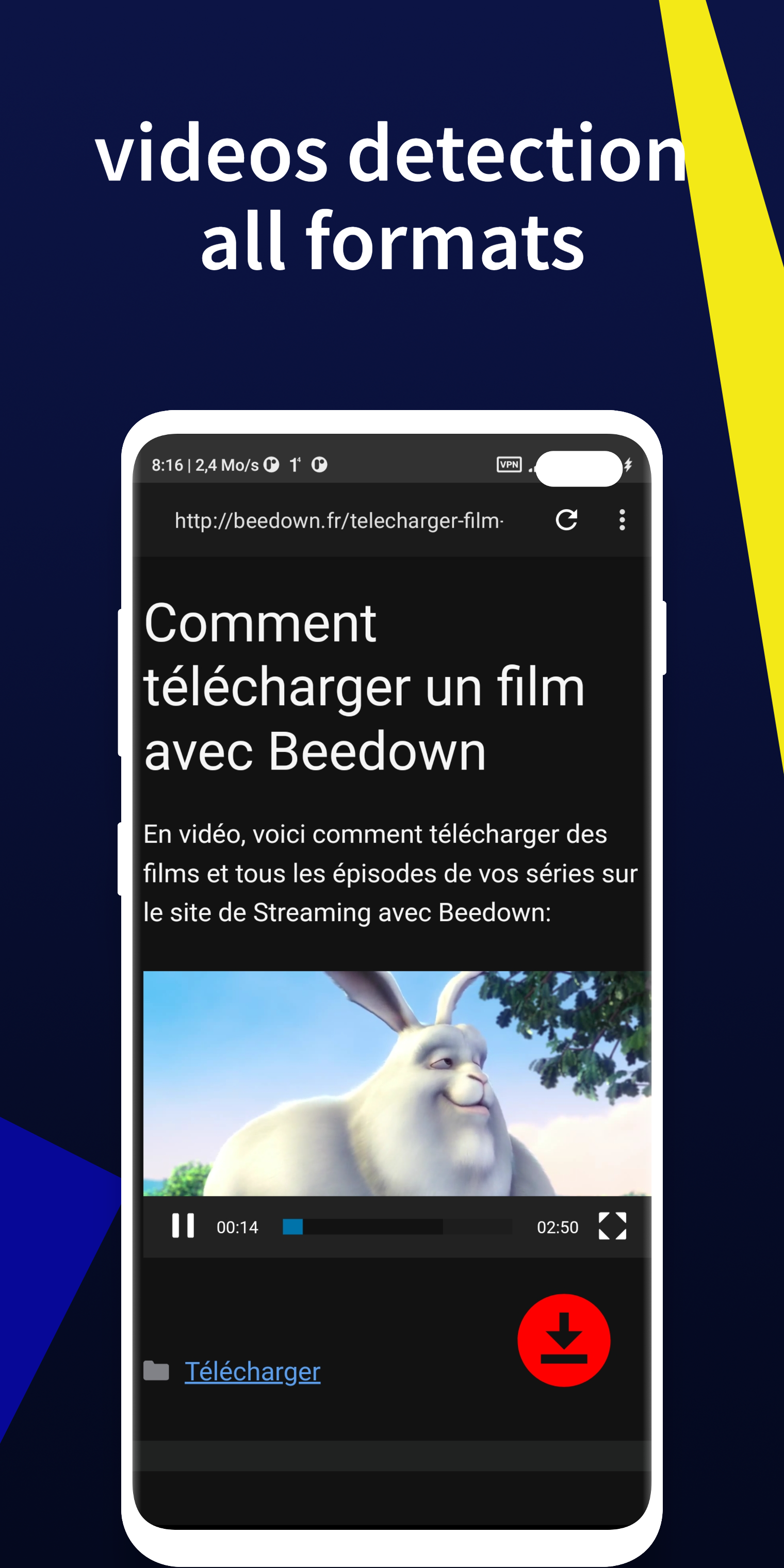 Beedown - Download Manager is all you need to download videos and all types of files from the Internet with its built-in browser for Android phone/tablet/SmartTV.