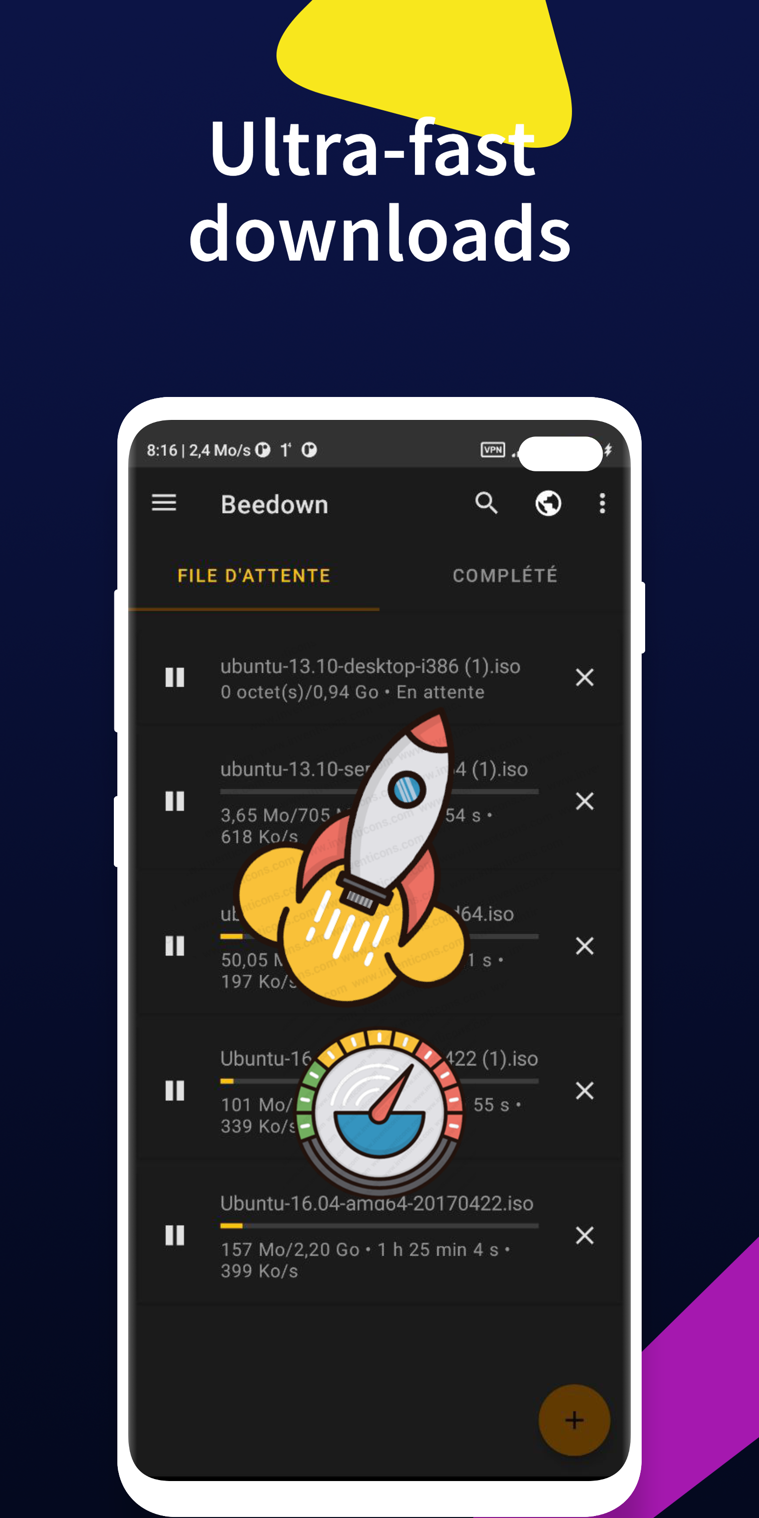 A light, fast, secure and very easy to use download manager, Beedown integrates a browser allowing you to download videos and files of all formats from the internet, you do not need to log in to an account or login. register to start a download on the internet in a fast, secure and efficient way.
