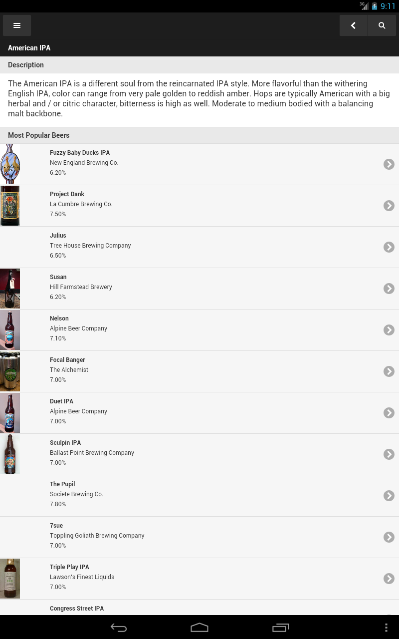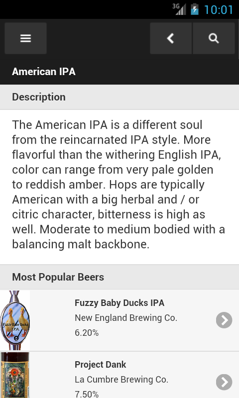 * Browse beer styles, beer listings, places and events