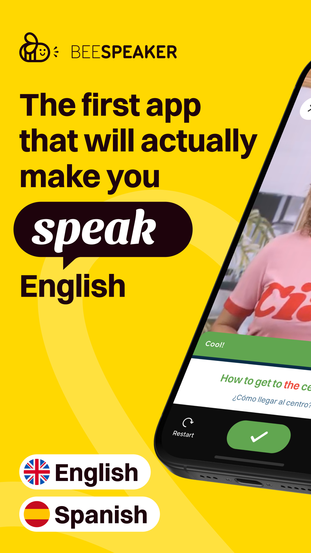 🐝 BzZzZz! Join our hive and start communicating smoothly in a foreign language. It has never been easier to learn English and Spanish! BeeSpeaker is a true revolution and the first-ever app totally devoted to learning to actually SPEAK English and Spanish. The app gets you speaking from day 1. Within the first week, our users say up to 1000 words in the language they’re learning. How? It’s a voice-controlled and AI-powered app, based on modern machine learning technology, in which your task is to listen to words and phrases and repeat or answer questions, speaking out loud in a foreign language. BeeSpeaker recognizes what you’re saying and gives you instant feedback. This way, you know where you’re making mistakes and where you need to improve. Why BeeSpeaker? 🗣️ 3000+ English and Spanish video lessons with our teachers and native speakers designed to improve your speaking skills. 📈 All language lessons are tailored to your level - starting from A0 and ending at C1. 🤖 A powerful AI Tutor module that corrects your mistakes and lets you practice free conversations, any time, any place. 🎯 Focus on vocabulary, grammar, pronunciation, and listening skills. 💬 Real-time feedback shows you where you’re making mistakes. 🚀 Progress tracking, points and streaks help you stay motivated and keep the learning part FUN! Are you tired of English vocabulary apps? Are you feeling stuck when actually trying to communicate in English? We focus on a natural method of learning a language. Instead of memorizing words, grammar rules, or reading flashcards, you learn by listening and repeating in English or Spanish and by practicing real-life conversations. Our interactive lessons help you listen, repeat, and correct mistakes instantly, building confidence every time you speak. Whether you're a beginner or an advanced learner, we’ve got lessons tailored for all levels! ☝️ How different people use BeeSpeaker? ➡️ Absolute beginners learn English or Spanish from scratch, with our video lessons tailored to A0 and A1 levels ➡️ Intermediate learners build vocabulary and progress to upper levels through our video course and by practicing speaking with BeeSpeaker’s AI Teacher ➡️ Advanced learners practice pronunciation and speaking with AI Tutor to prepare for popular English exams, like FCE, TOEFL, IELTS, or TOEIC ➡️ And for the most advanced learners, we’ve just added a C1 English course so that you can master your English to perfection 👩🏫 Our instructors ➡️ Experienced teachers and native speakers from countries like Great Britain, the United States, and Australia. ➡️ Thanks to them you will learn different accents and ways of pronouncing particular words. 🤖 AI Tutor ➡️ BeeSpeaker’s AI Tutor is your personal English & Spanish language coach powered by artificial intelligence, available 24/7. ➡️ It lets you practice free conversations and adjusts responses to what you’re saying - just like in real life. But without judgement or stress. The app offers a free 7-day trial during which you can test every feature inside. You can cancel your trial anytime. And when you’re ready, you can unlock all features with our PRO subscription. Break free from speaking anxiety, gain confidence, and speak English and Spanish naturally! The more you practice with BeeSpeaker, the faster you'll improve. Ready to start speaking fluently? Let BeeSpeaker be your guide. Download now and join the language revolution!