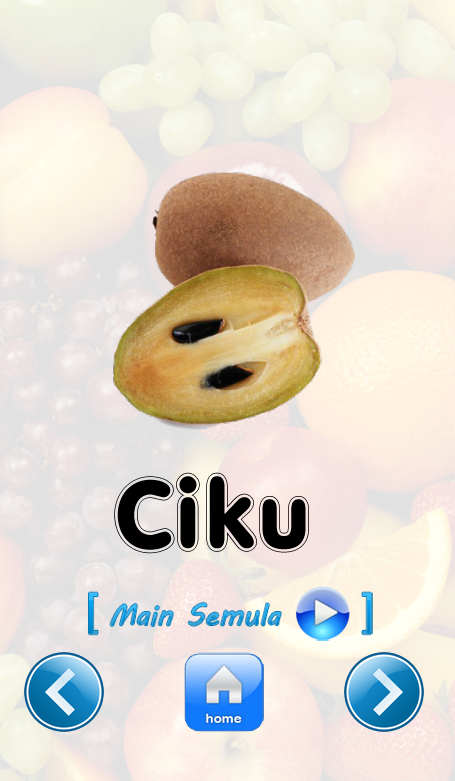 Sila UPDATE atau DOWNLOAD semula versi baru iaitu V 1.0.6 ================================================ Aplikasi Belajar Mengenal Buah bagus untuk anak anak mempelajari dan mengenali pelbagai buah seawal usia mereka. Terdapat 46 jenis buah untuk dipelajari dan ditontoni. Download dan sebarkan mengenai Aplikasi "Belajar Mengenal Buah" ini. Untuk muatturun aplikasi lain untuk anak-anak, anda boleh lawati: http://kidsfungamesworld.com/ History: Version 1.0.1 - 1.0.4 - Pembangunan aplikasi secara berperingkat Version 1.0.5 - Penambahbaikan Antaramuka dan GPU aplikasi Version 1.0.5 - Fixed Bugs