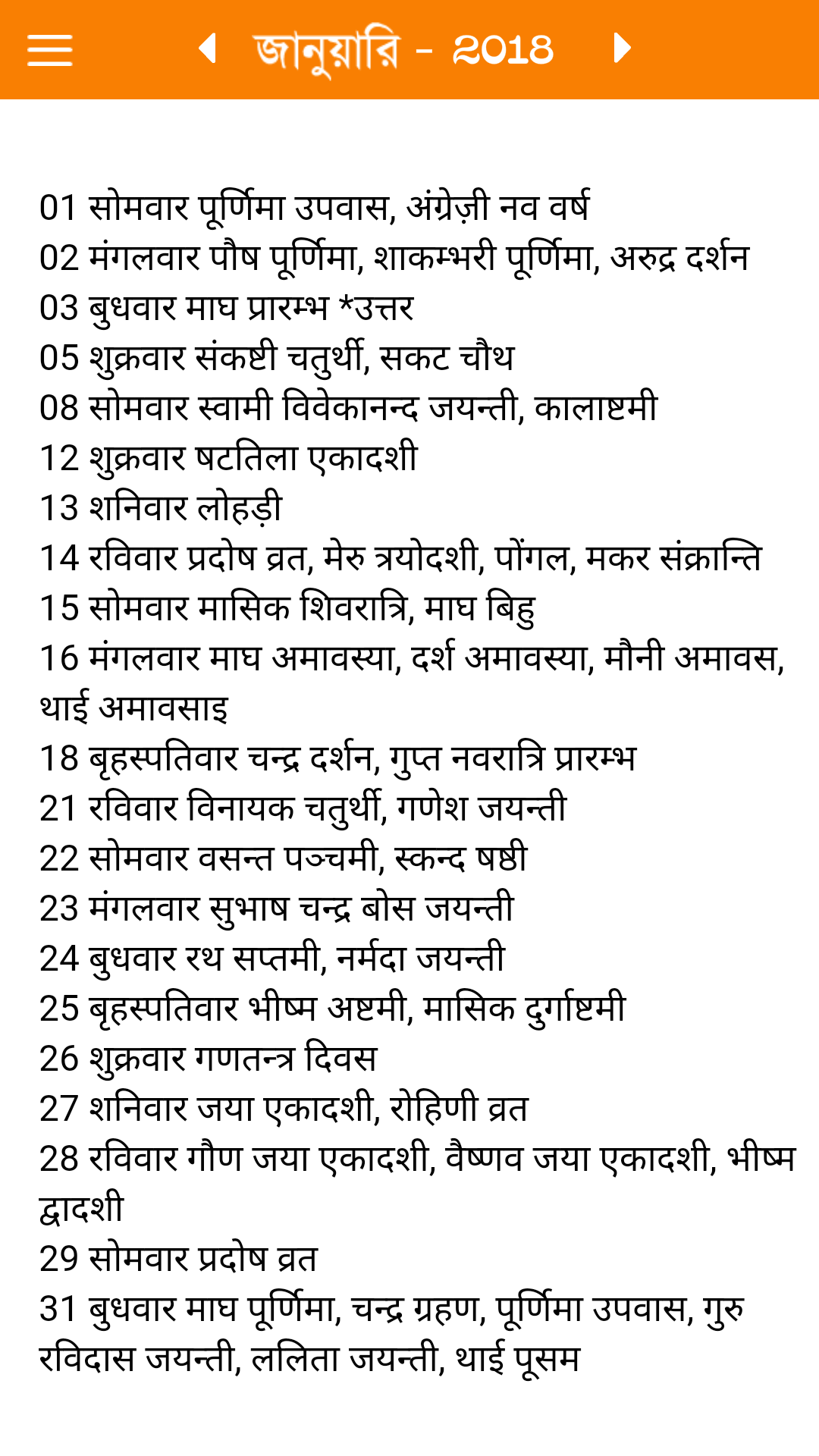 Bengali Calendar Almanac is an informative app for people of India,Bangladesh and Bengali speaking people across the world.Wherever you go! This application is a great tool to help you get the most out of your day, and plan your days for success.The Panchang presented in this app contains enough information for people following different Panchang.After install, you can have this Bengali calendar offline and still use it.Panchang is used to denote five elements of Vedic Astrology, namely Tithi, Vaar (weekday), Nakshatra, Yoga and Karana. These five elements when combined for a day are known as Panchang. These five elements change every day with the movement of the Moon and the Sun. Hence, followers of Hinduism refer Panchang on day to day basis. Application supports following features : 1) Sunrise, Sunset, Moon rise, Moon set, Sun sign and Moon sign. 2) Almanac 3) Good Time 4) Bad Time 5) Horoscope (Daily, Week, Month, Year) 6) Auspicious (Marriage, Property, Housing, New Purchase ) 7) Festivals (Particular Month) * Users can select any date and get information for that particular date. * Users can select any month and year by clicking left and right arrow buttons. And if you like the app, please encourage us by giving us your feedback.We value your feedback and would love to hear from you. Keywords:Bengali Calendar 2017,2018,2019,2020, Bengali news and Bengali language.