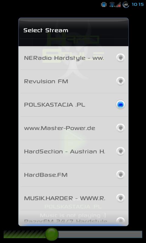 Best Hardstyle Internet Radios.. More stations will come with updates.. WARNING. This application can eat a lot of Mb from your FUP . We recommend you use only when WiFi connection If you want add your stream to my app, feel free to contact me.. :)