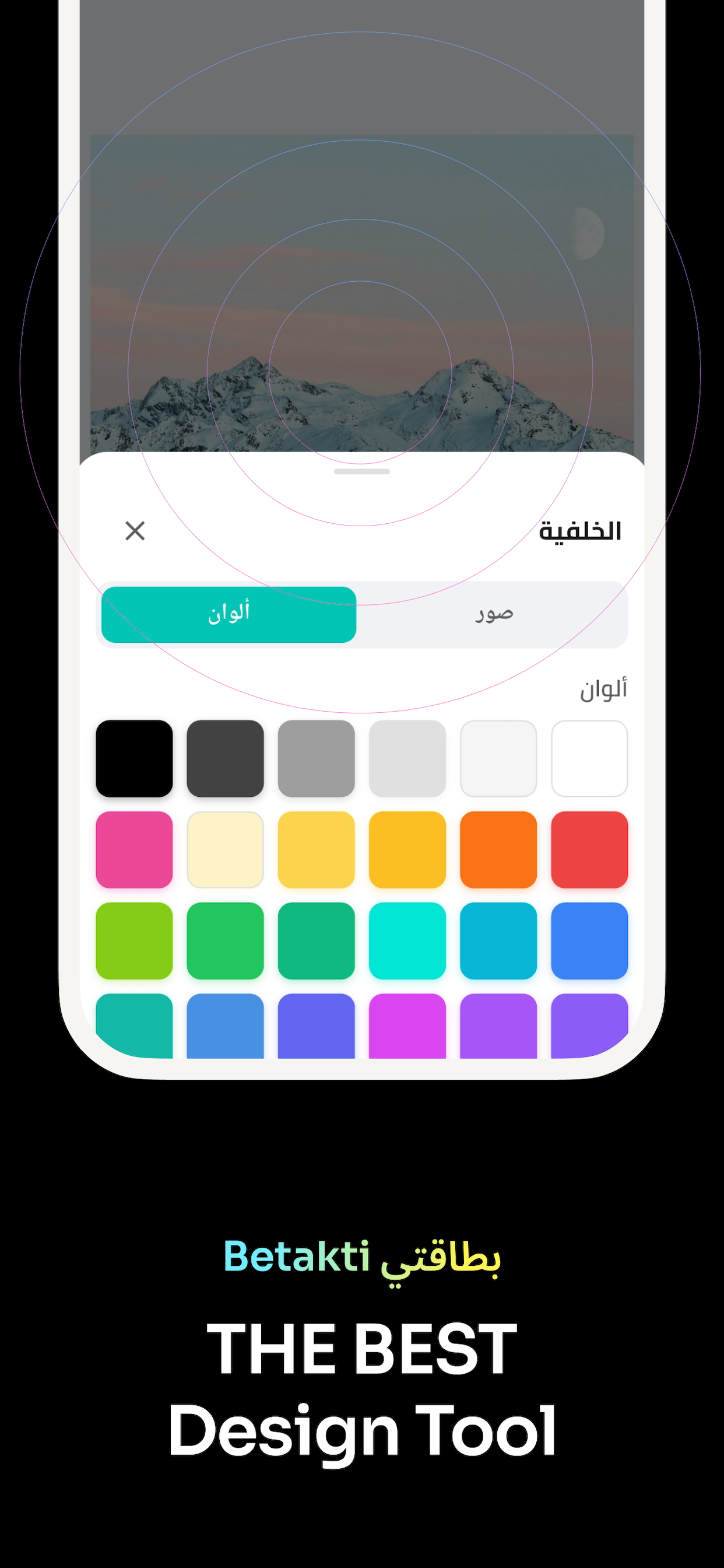 Betakti has a brand new design and new tabs and new way to design, write and color stuff. ------------------------------------------------------------------------ Betakti lets you create your own designs and stickers, using fonts, shapes, colors, and amazing objects easily, quick and fun way. then share it with your friends and loved ones. ------------------------------------------------------------------------ Use our pre designed cards for business use like CVs and business cards, or Logos and backgrounds, your have access to many creative, curated and professional designs. ------------------------------------------------------------------------ Add text to images using +200 arabic and english fonts, also shapes and effects. ------------------------------------------------------------------------ Search +2000000 images using Unsplash photo library. ------------------------------------------------------------------------ We have texts for many occasions like: marriage, graduation, invitation, eid, ramadan, hajj, azkar, charity .. etc Also shapes like: flowers, islamic decoration, arabic decoration, social media icons .. etc ------------------------------------------------------------------------ Subscribe to our premium to get more features: ✓ All cards are open and free ✓ Unlimited search in Unsplash library ✓ Download image without background ✓ No Ads ------------------------------------------------------------------------ The app is easy, fast, and professional. For any inquiries or help: reach us in Instagram and Twitter @betakti ------------------------------------------------------------------------ Terms of use: http://betakti.com/www/terms_of_use.html Privacy Policy: http://betakti.com/www/privacy_policy.html DMCA: http://betakti.com/www/dmca.html