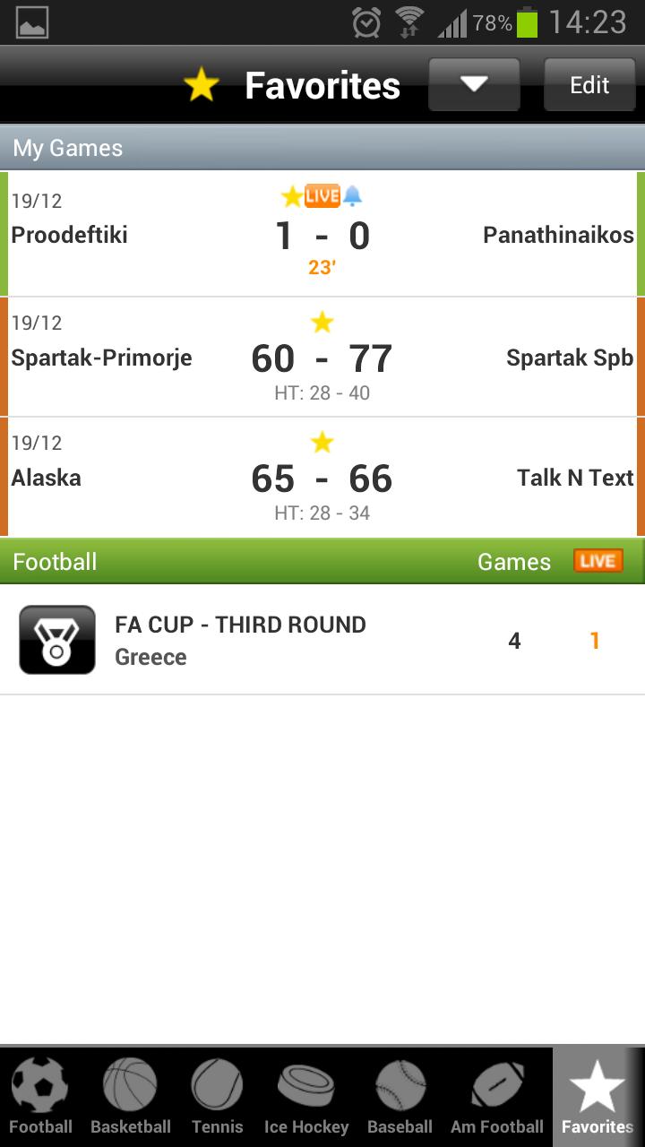 betscores is the ONLY app to deliver LIVE SCORES and LIVE ODDS for 50+ BOOKIES across 6 SPORTS in one place, for FREE! Compare the latest odds, find the best price in the market, follow the market trends, get live updates & notifications of your favorite teams and sports, anytime anywhere with betscores. The MOST complete, all-in-one application for all sports fans and betting enthusiasts alike. Get it NOW! with betscores: • you follow 6 sports: football, basketball, tennis, baseball, american football, ice hockey • enjoy live scores for over 300 leagues and tournaments worldwide • check the latest betting offers and compare odds from 50+ major bookmakers • get updates including notifications for all live match events: minute, cards, scorers, serving, quarter scores etc... Betting information ✔ Real time odds from 50+ online bookmakers ✔ 3-way, Home/Away, Over/Under, Handicap ✔ Betting odds statistics: max and average. ✔ Sorting and trend indicator for the offered odds. Coverage • Football: more than 200 leagues • Tennis: all worldwide tournaments • Basketball: the most popular leagues • Ice hockey: the most popular leagues • Baseball: the most popular leagues • American Football: the most popular leagues Highlights ✓ Easy, self explanatory what-you-see-is-what-you-get user interface ✓ Detailed event information: → Football: minute, scorer, cards. → Tennis: set, match, serving → Basketball: quarter, half time results → Ice Hockey: period, minute, scorer → Baseball: innings, hits, errors → American football: minute, player, quarter, FG, TD, EP, SAFE, ROUGE, PC2. ✓ League tables available for all sports ✓ Facebook connect to post a match result or event on your wall ✓ Users can build their own list of favorite matches/leagues for easy access ✓ Real-time goal alerts for matches in the list of favorites ✓ Push notifications ✓ Advanced search functionality